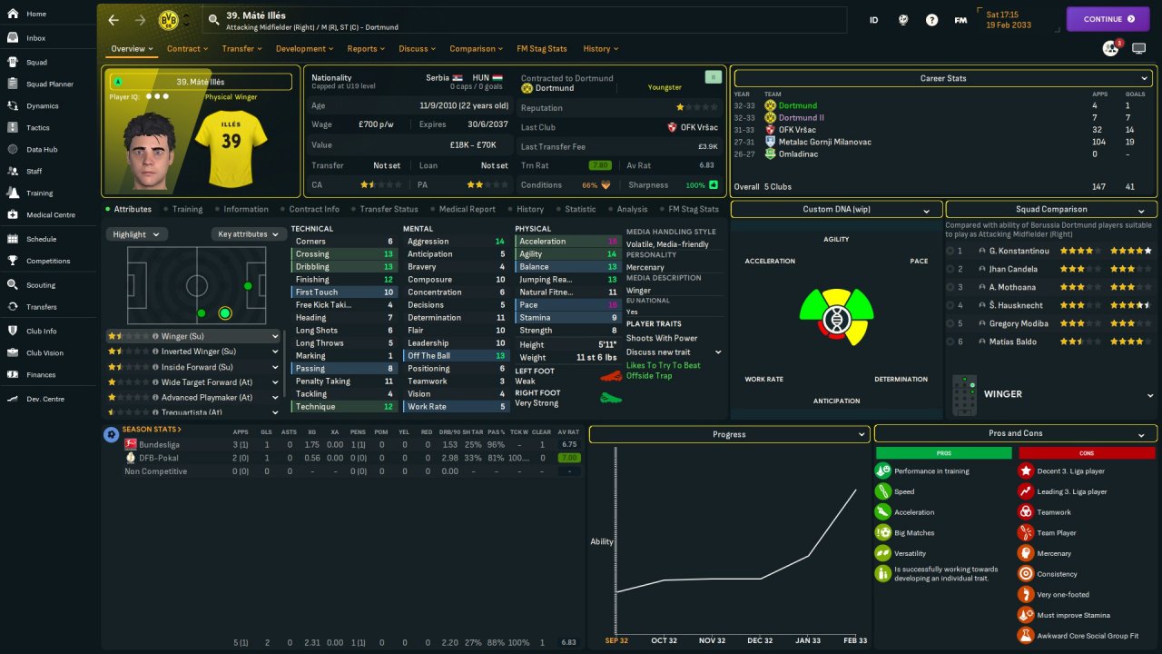 Chriswin4 said: Have rebuilt my Dortmund team to have the second lowest wage bill at 700k a week. I have to say, I think I may have messed up as my team doesn’t seem great, despite having players that are high rated in the meta stats and fit the attribute profiles we use on python. Expand