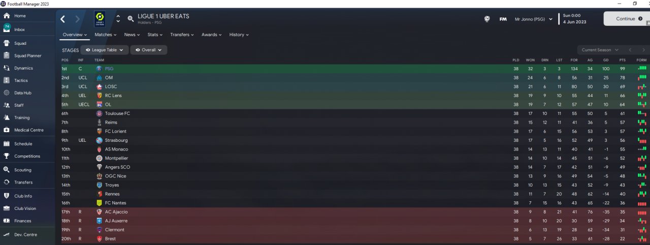 It didn't do great with one team, and that was Forest, who managed 10th place, which isn't bad considering they was tipped for relegation. All the other teams performed well beyond expectations, with PSG finishing top, which is only expected.