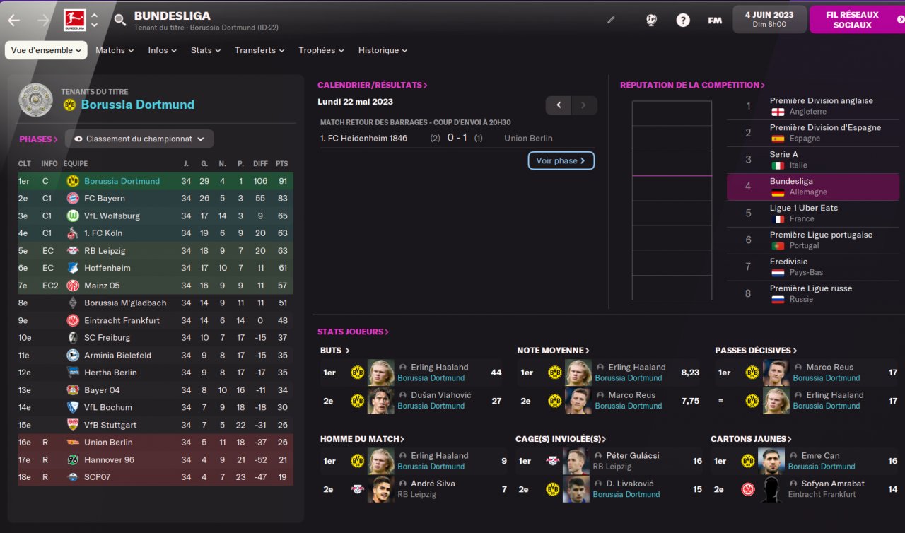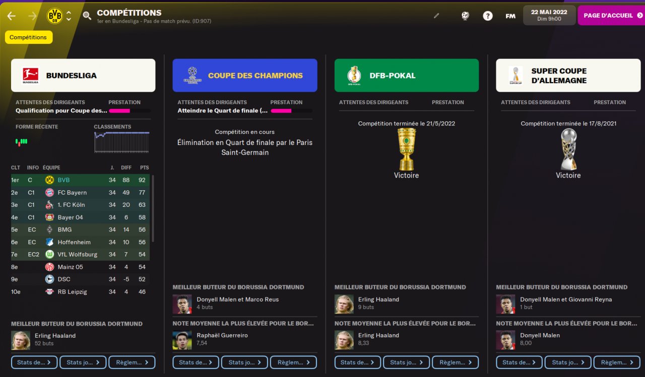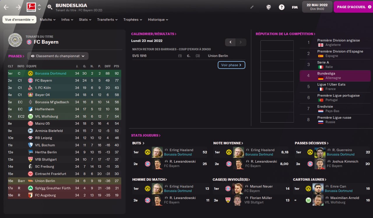 Champion after 29 matches. Haaland 64 goals including 52 in the league