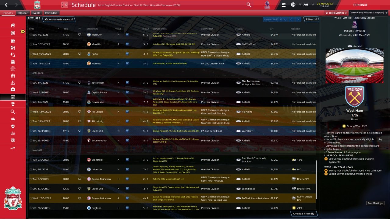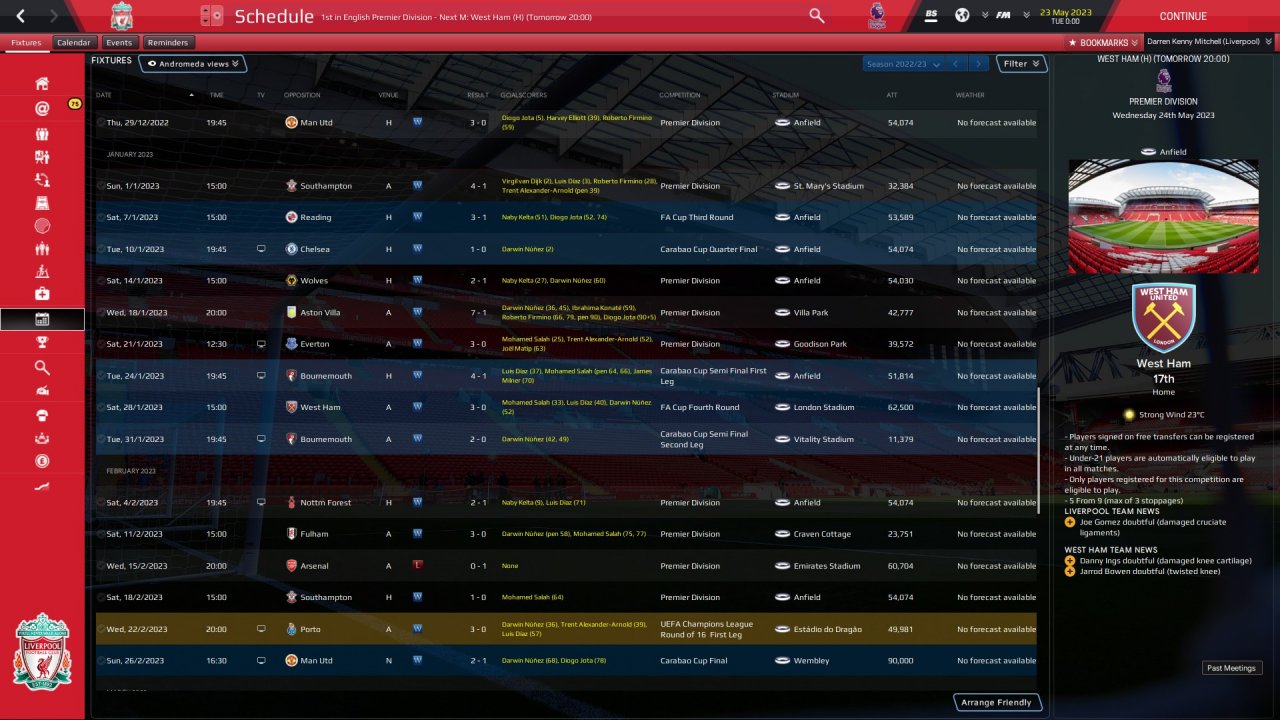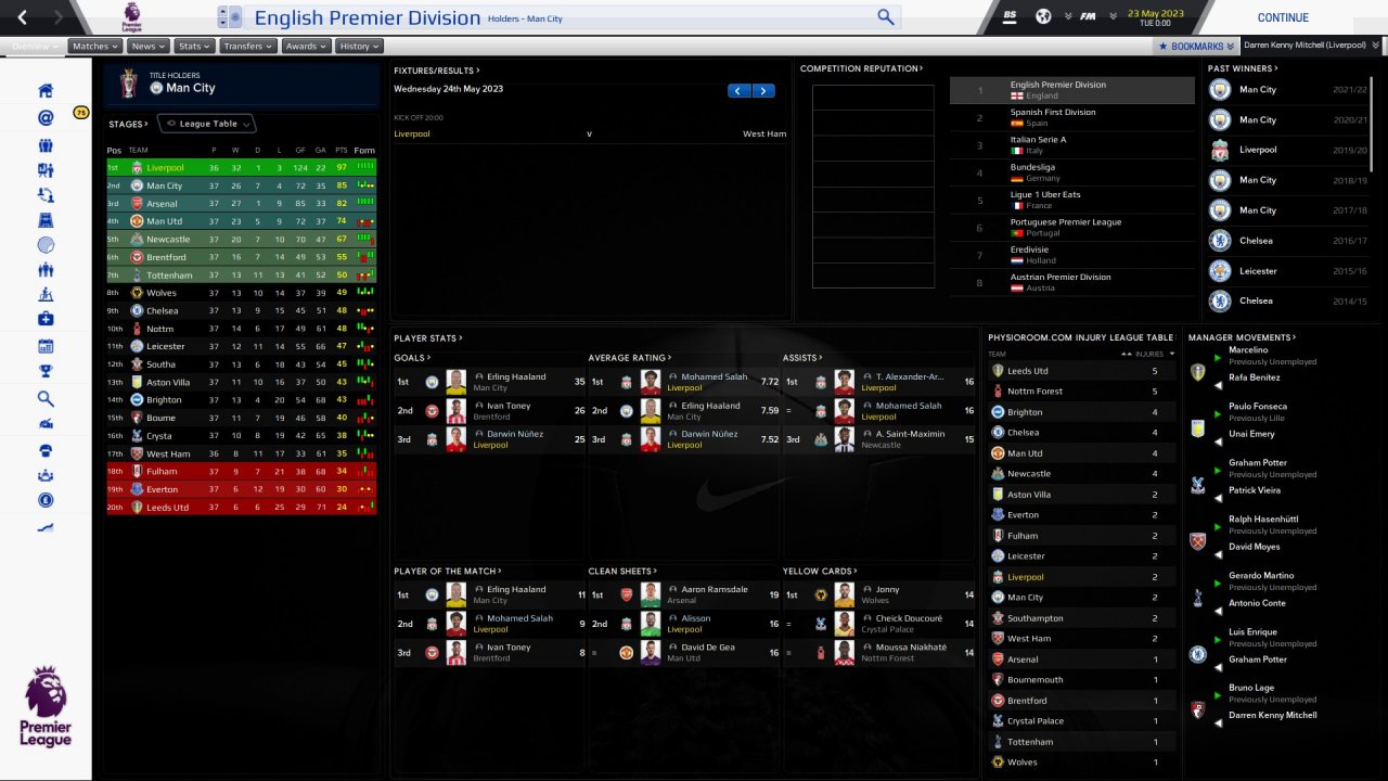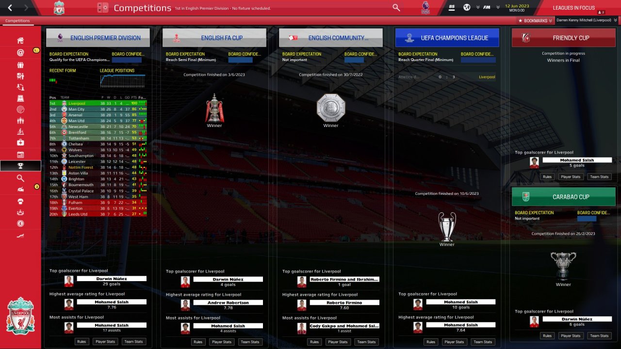 Started with rangers won treble and also got to the Europa league final first season 78 games played 87% win rate hoping for a decent showing with other teams in stronger leagues currently in second season and qualified from my Champions League group containing Barcelona & Ac Milan and PSV.