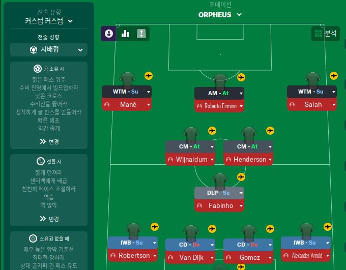 I tested this tactic with Incheon, a weak team in the k-League, and Liverpool, a strong team in the Premier League.