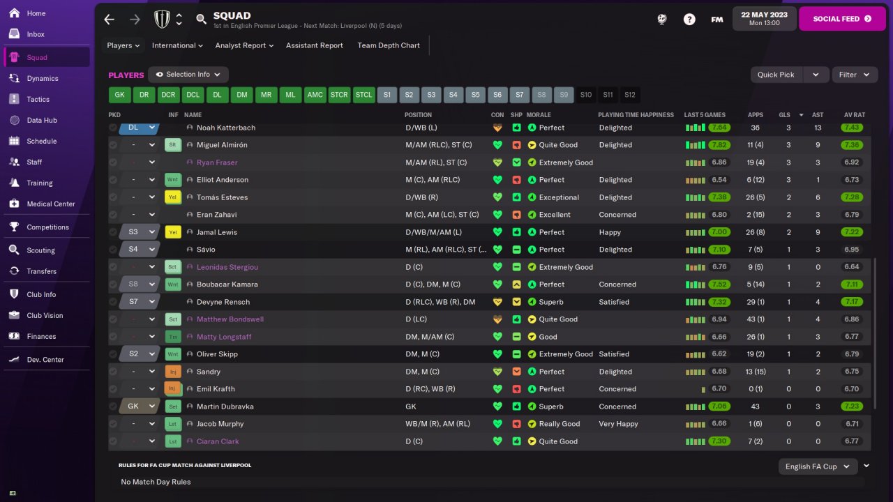 thanks mate. i am also doing rotation, so i have 2 best 11. btw would it be fair to say that the DR and DL are important players for this tactic? last year my DR made 17 assists in the league.