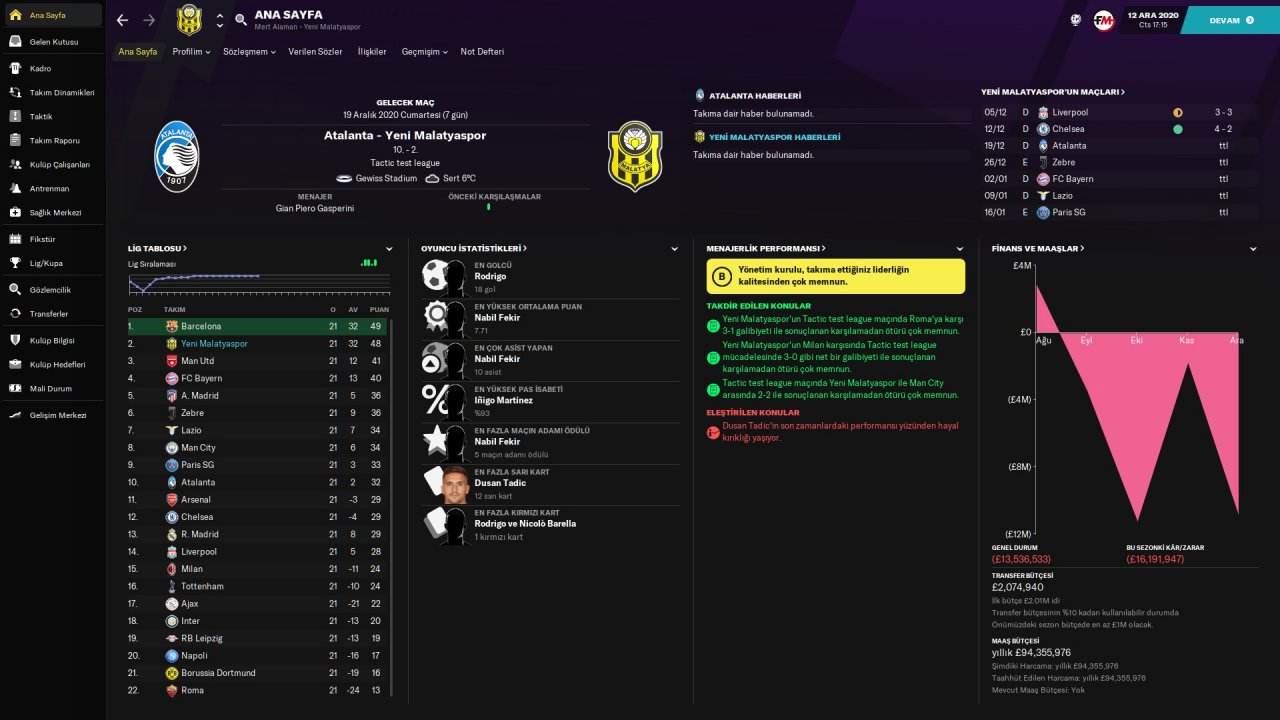 I play with this tactic with galatasaray almost i win every game. Sometimes away matches will be lost i need improvement. Please test this tactic i wonder how its gonna in ur league