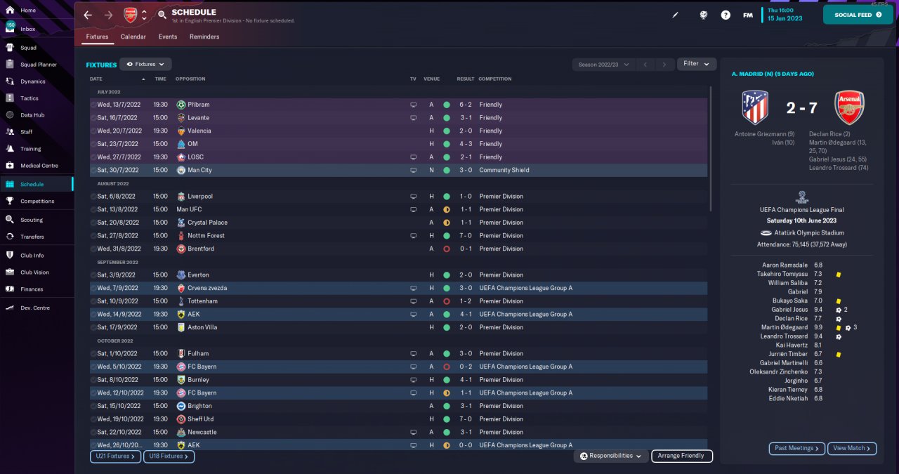 Wanted to try a 3 striker tactic. Instead of 3 AF's, wanted to try the False Nine role. Set pieces are from the 424 Bombyte tactic.