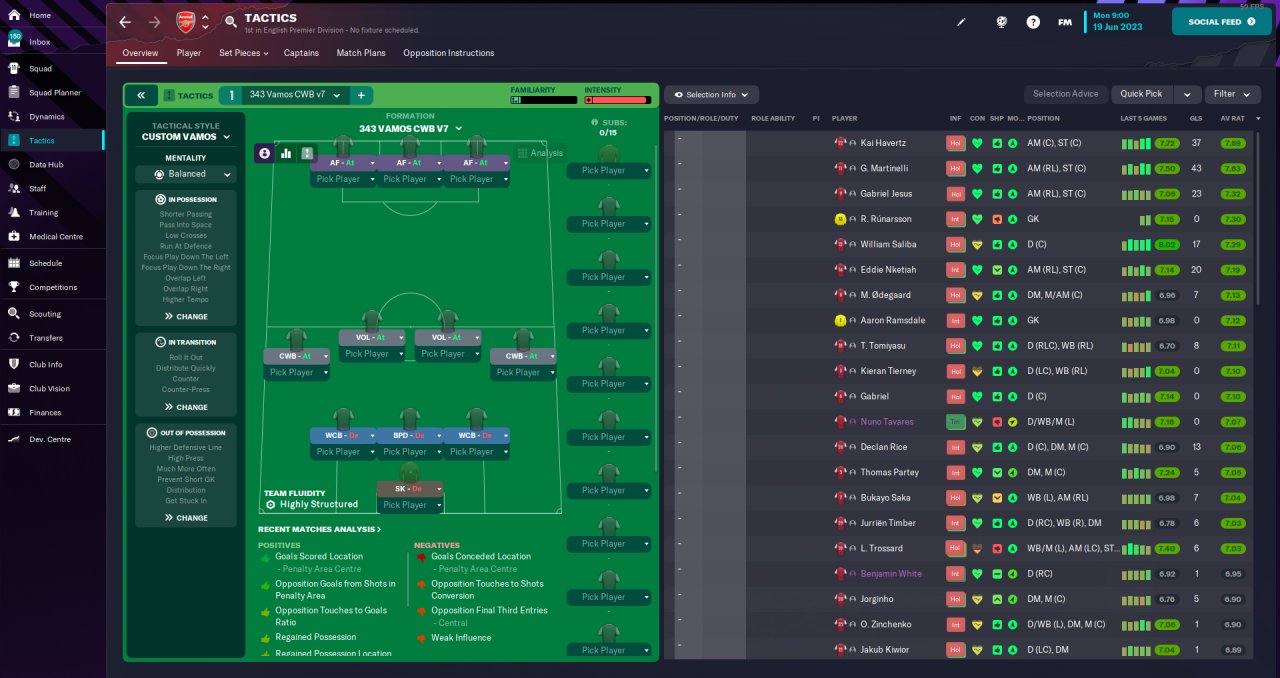 Made another three defender tactic with inverted wing-backs. This time using three strikers and two defensive midfielders on support. Set pieces are from the 343 Italian KO by @Delicious.