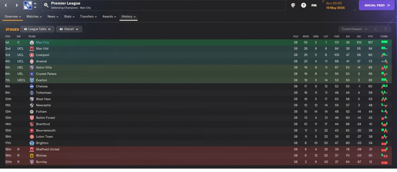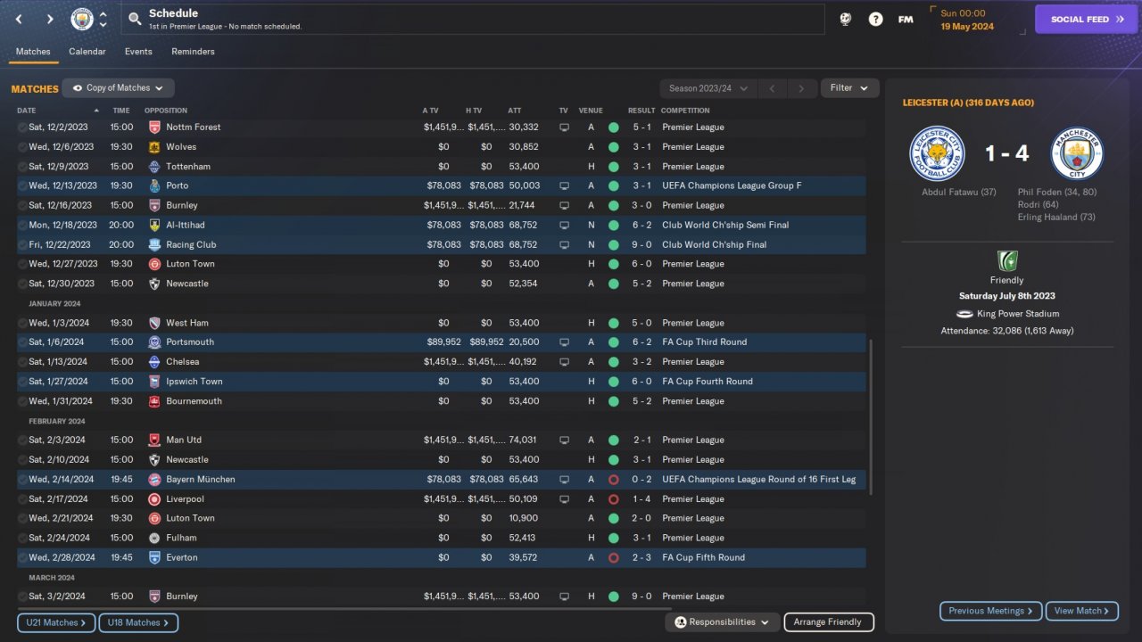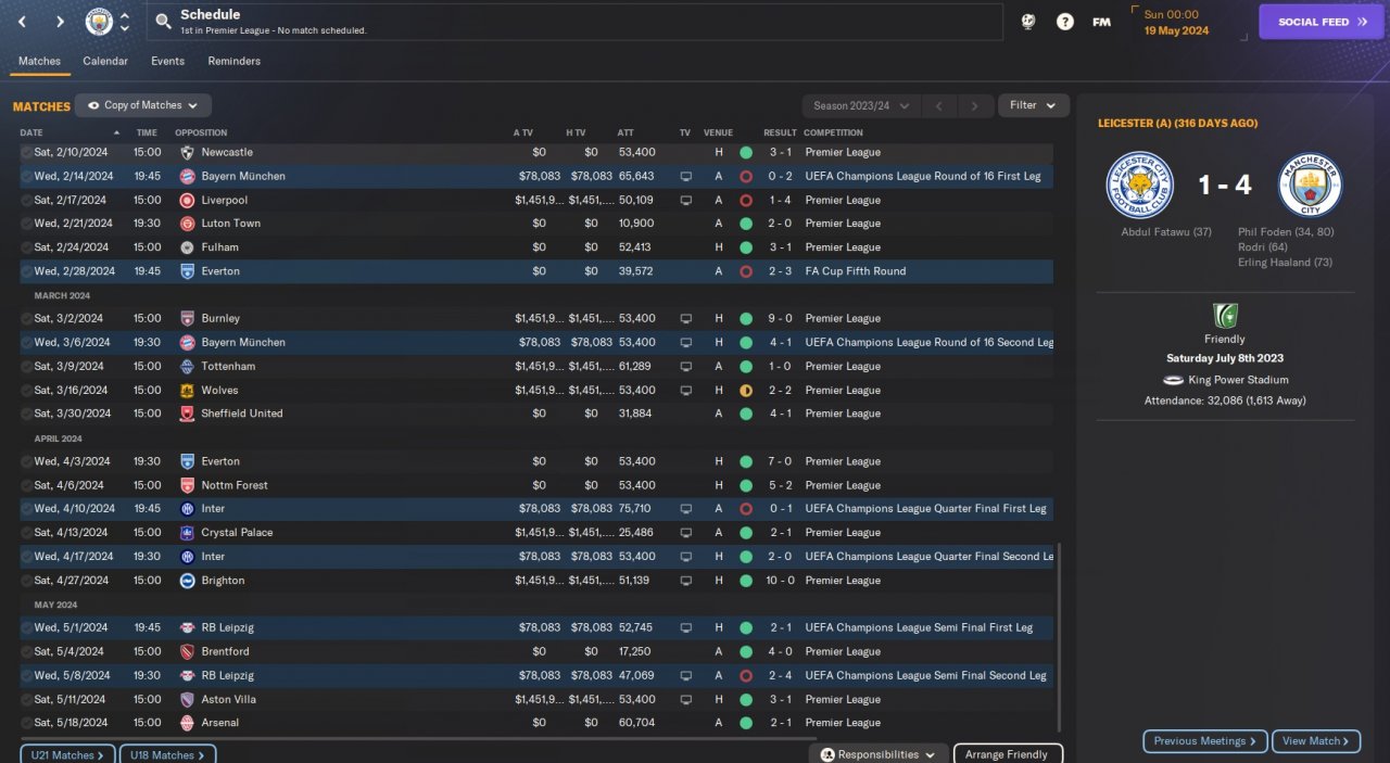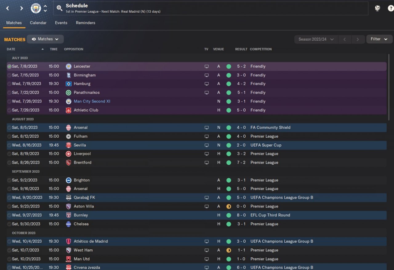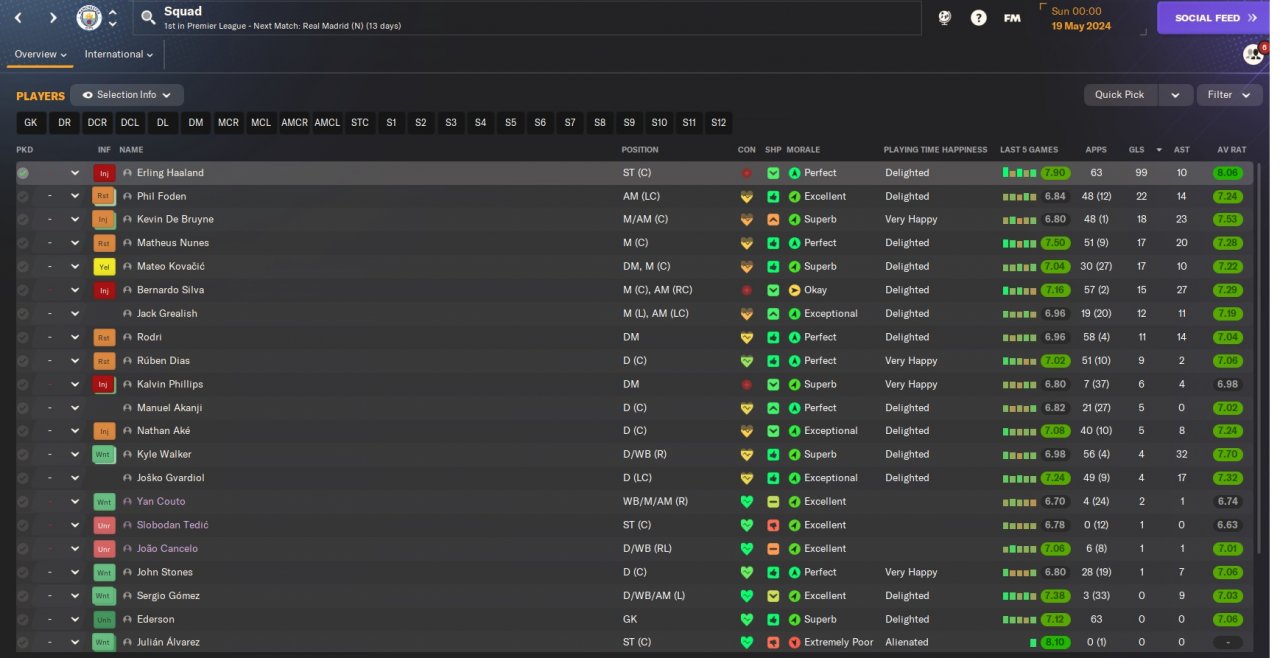 Update with Real Madrid LaLiga results. For some reason, AI coach didnt play courtouis as GK, choosing play the inferior Kepa that was loaded from chelsea. This results in some bad games, like the crushing defeat to Milan in UCL, after winning 5-1 at home. It has won all others cups, anyway.