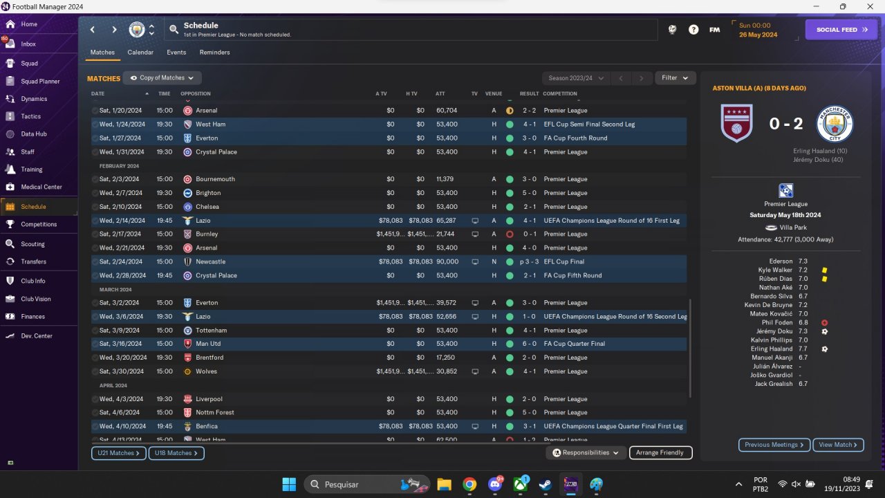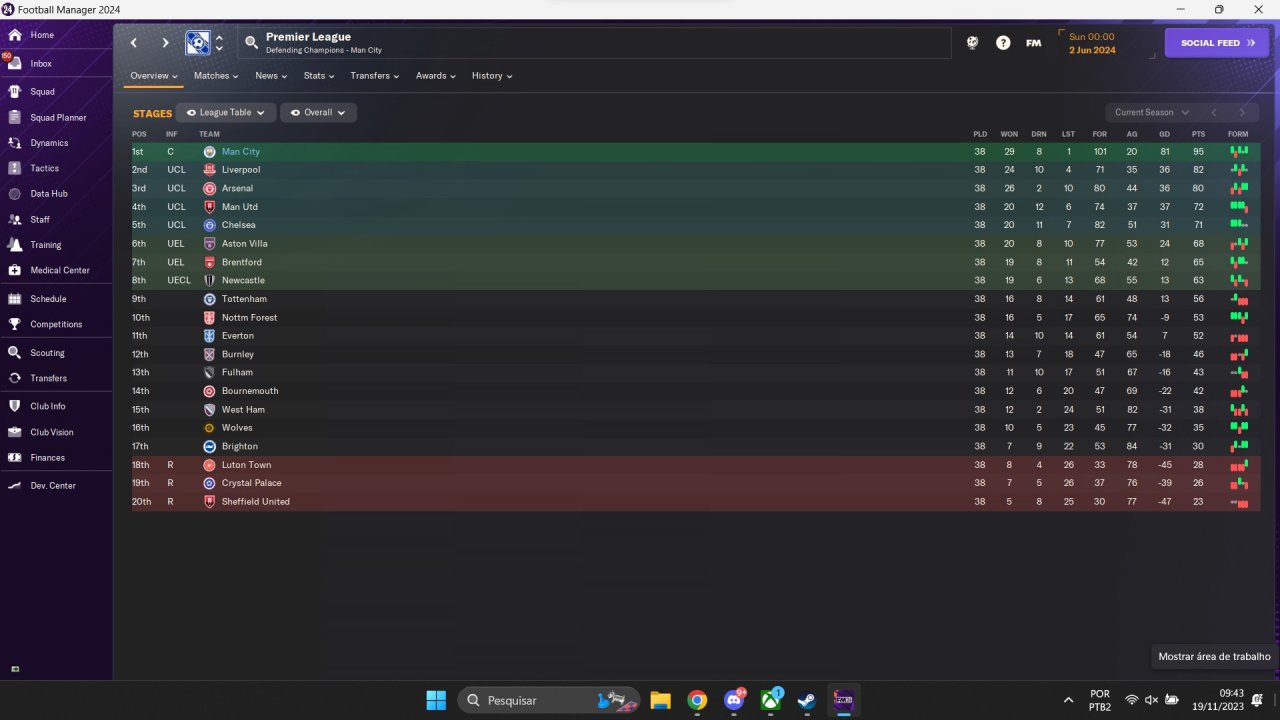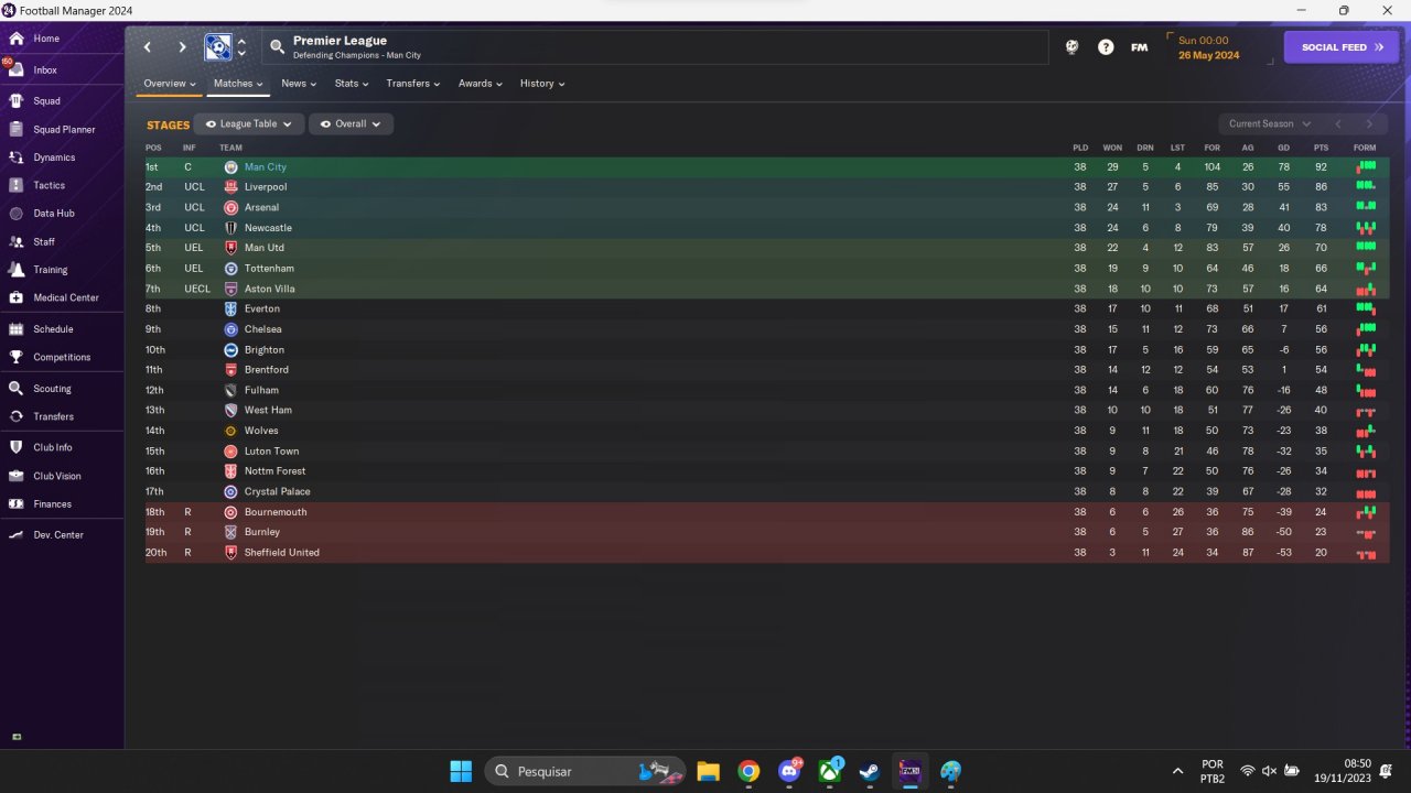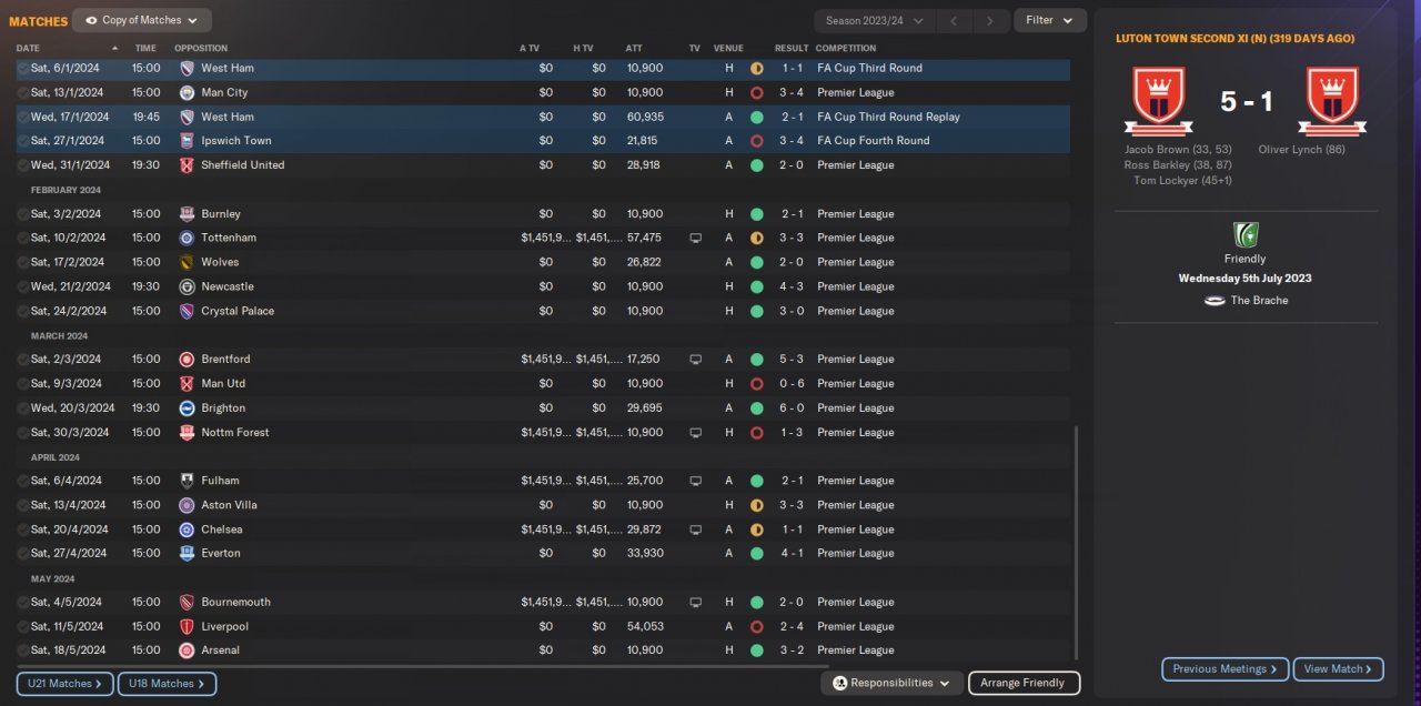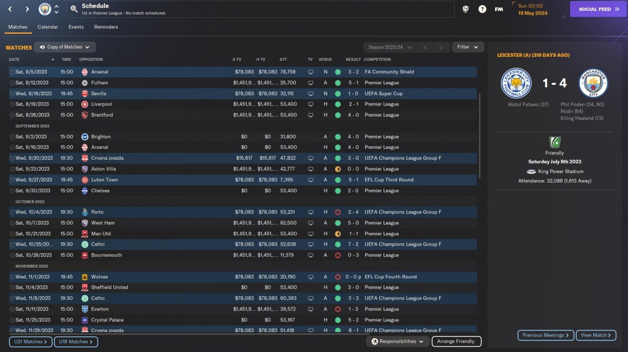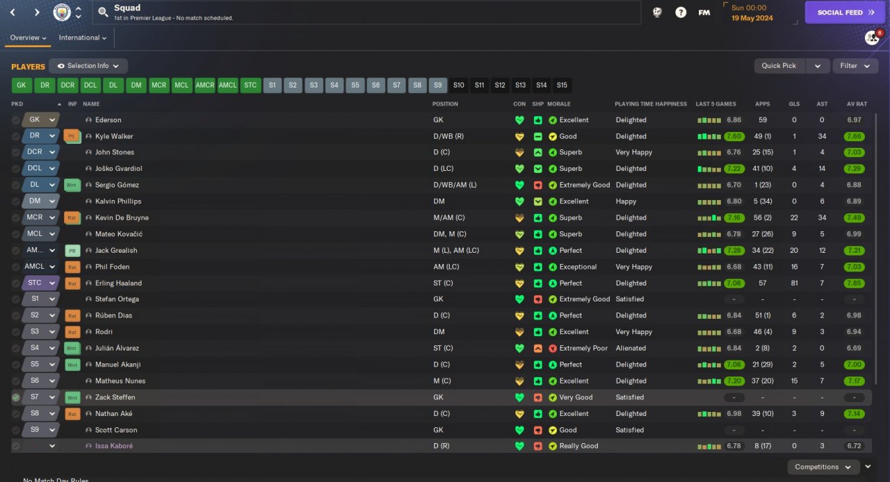 Update with Real Madrid LaLiga results. For some reason, AI coach didnt play courtouis as GK, choosing play the inferior Kepa that was loaded from chelsea. This results in some bad games, like the crushing defeat to Milan in UCL, after winning 5-1 at home. It has won all others cups, anyway.