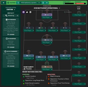 The idea is to see how the tactics work on a very defensive mentality (and thus, lower intensity) mantaining a strutucred team fluidity (thats why the WBR change). I choose to maintain WBL on attack to allow deep runs on ofensive end.