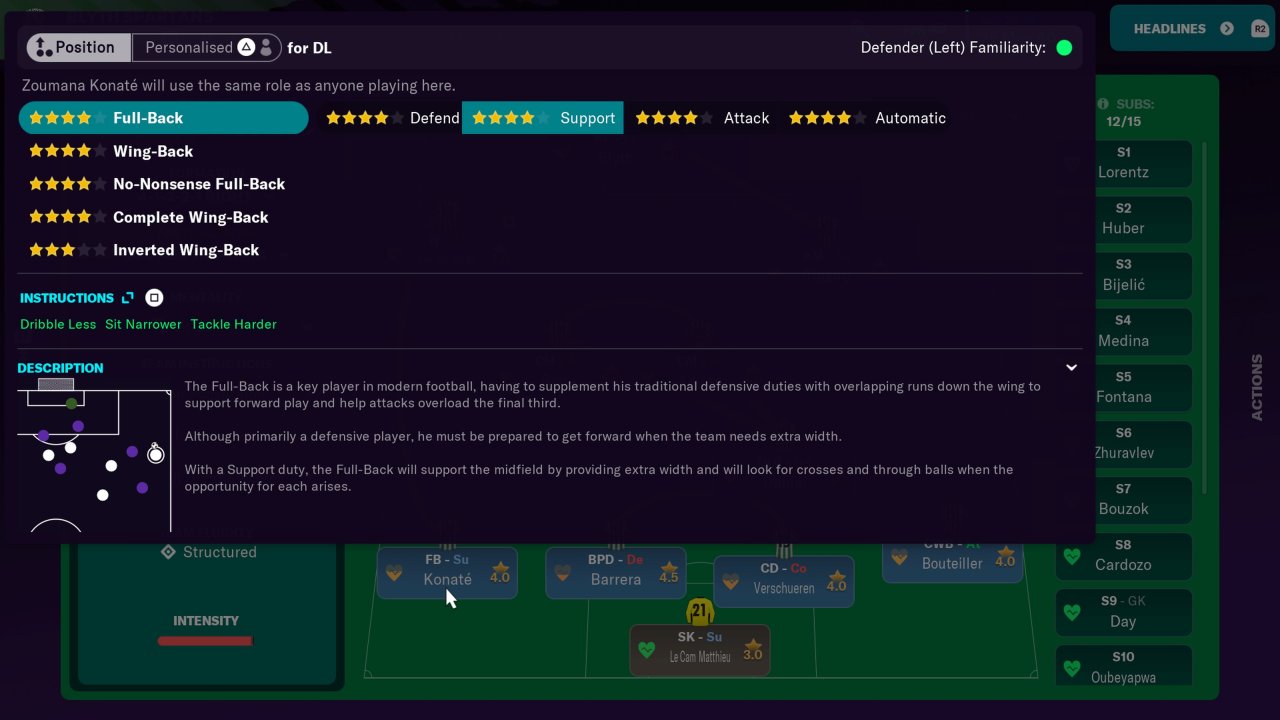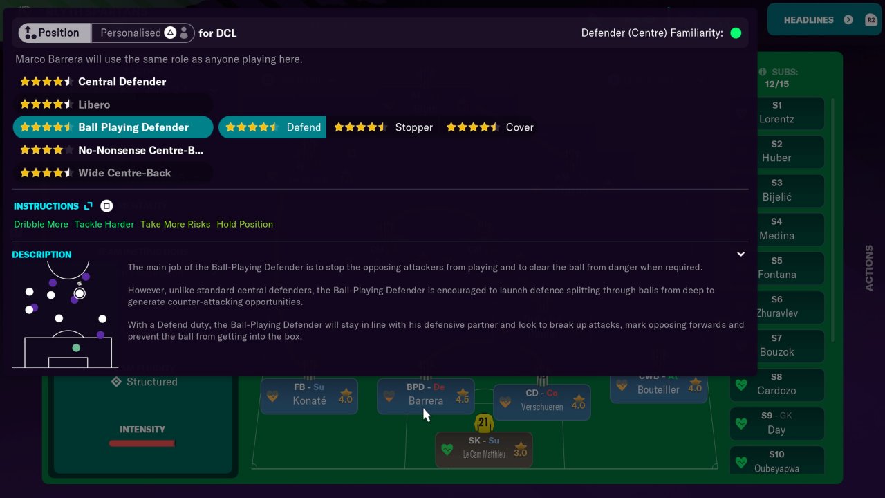 Player instructions: Every player has the tackle harder instruction These 6 have more detailed instructions: The Ball Playing Defender : dribble more