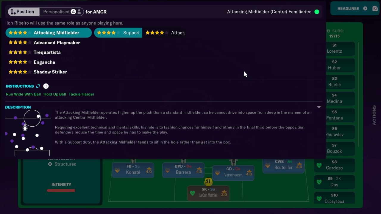 And finally, the Attacking Midfielder: Run wide with ball, Hold up ball