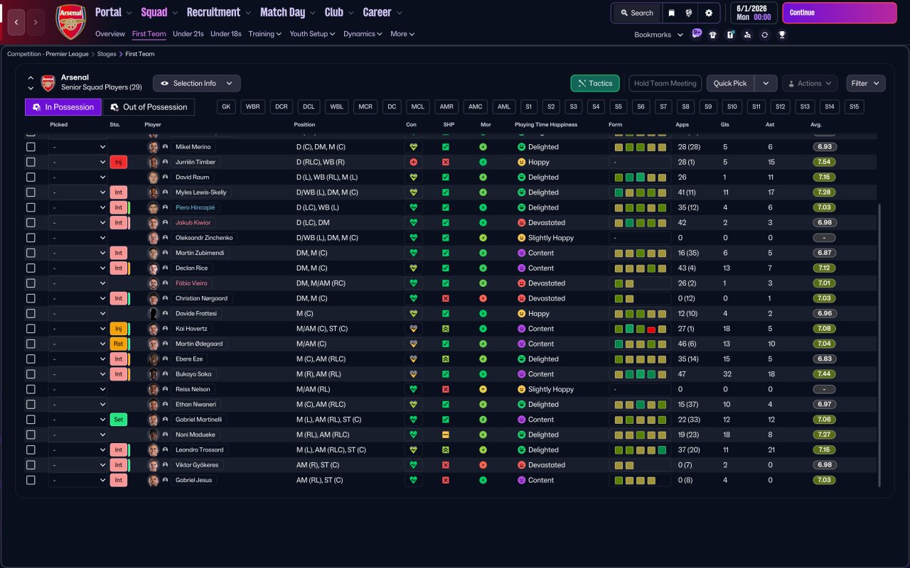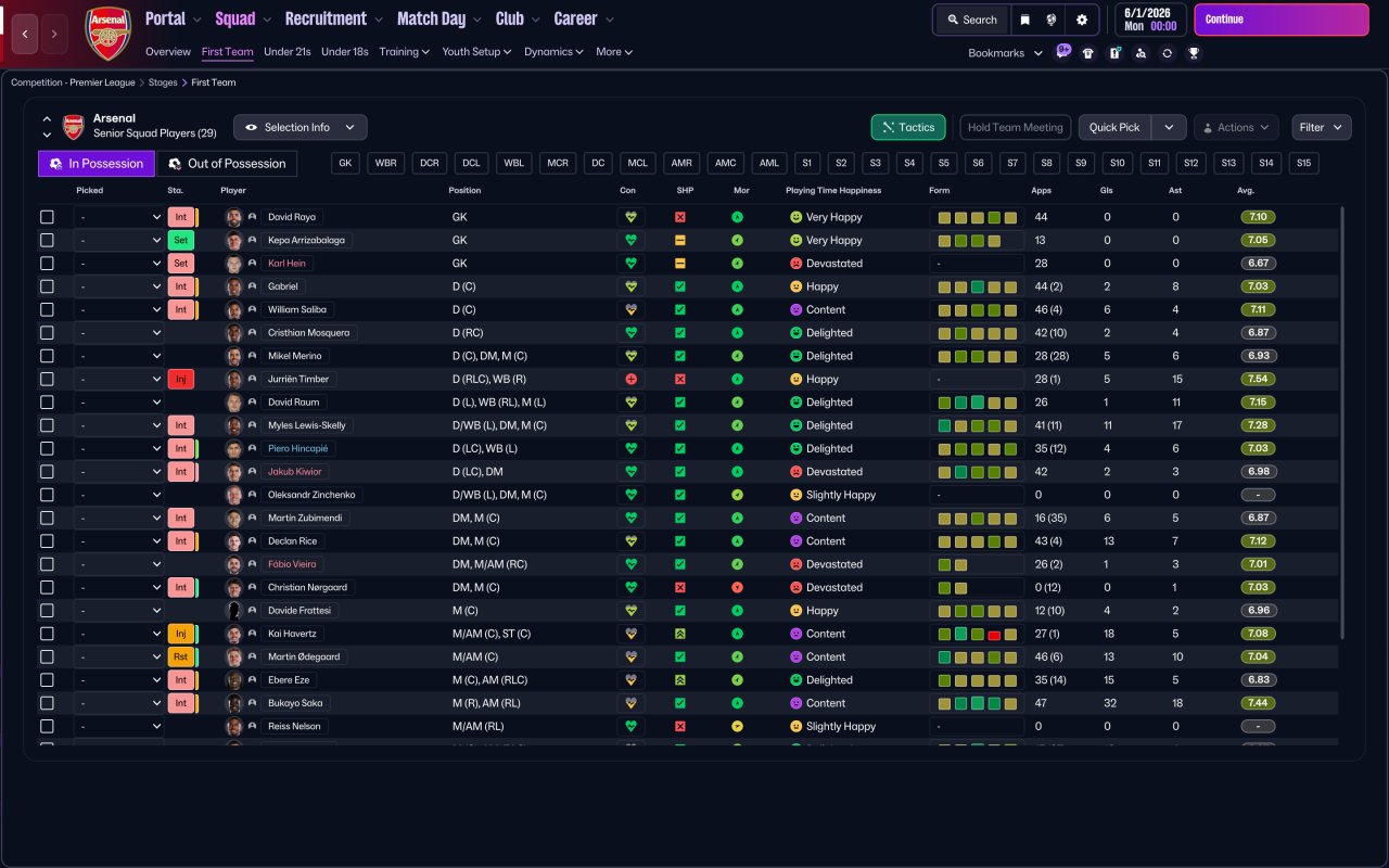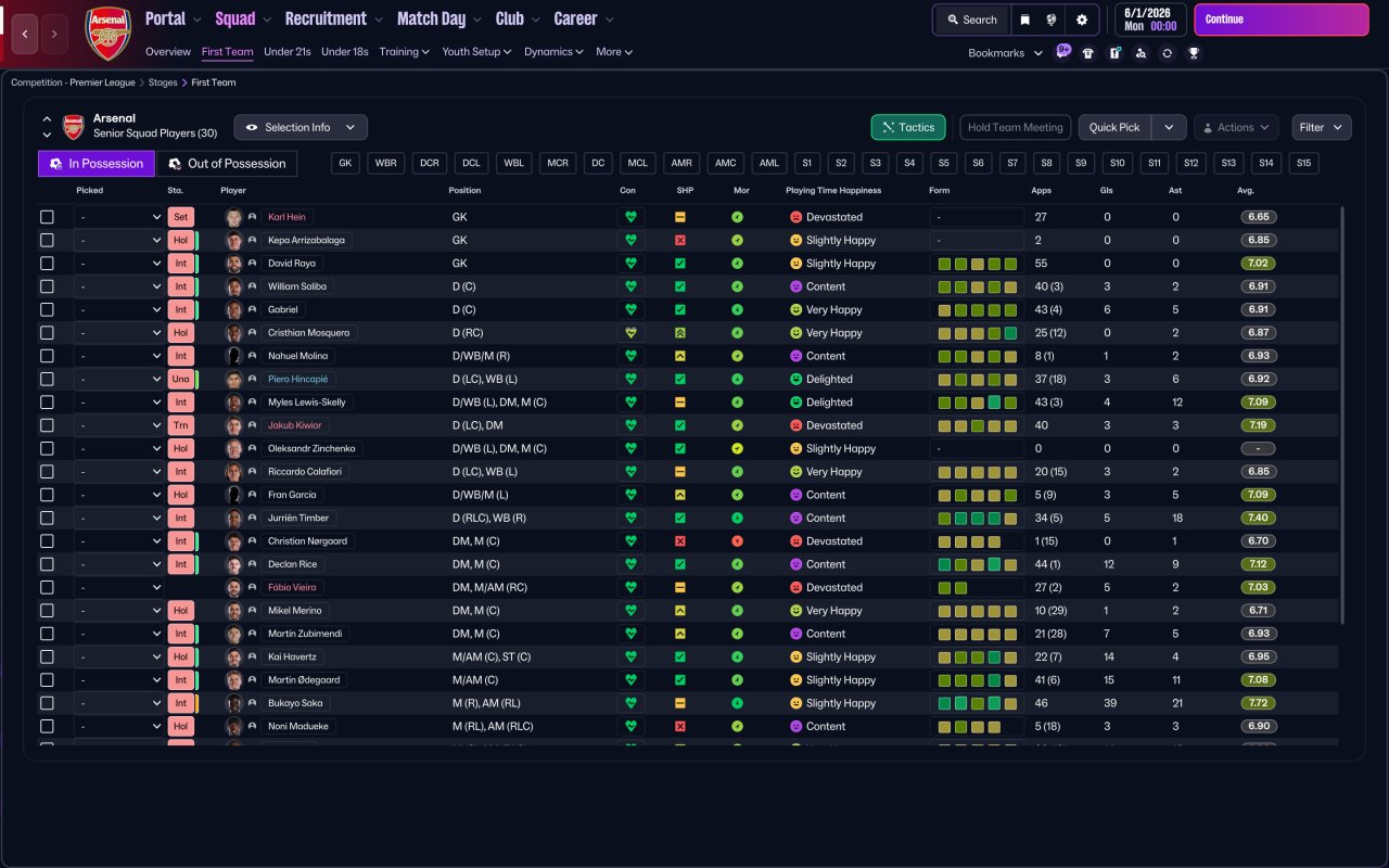 PIs: - All players except BGK: Tackle Harder - OCB: Shoot Less Often - AWB: Sit Narrower, Shoot Less Often, Cross From Byline - AM: Move Into Channels, Make More Runs