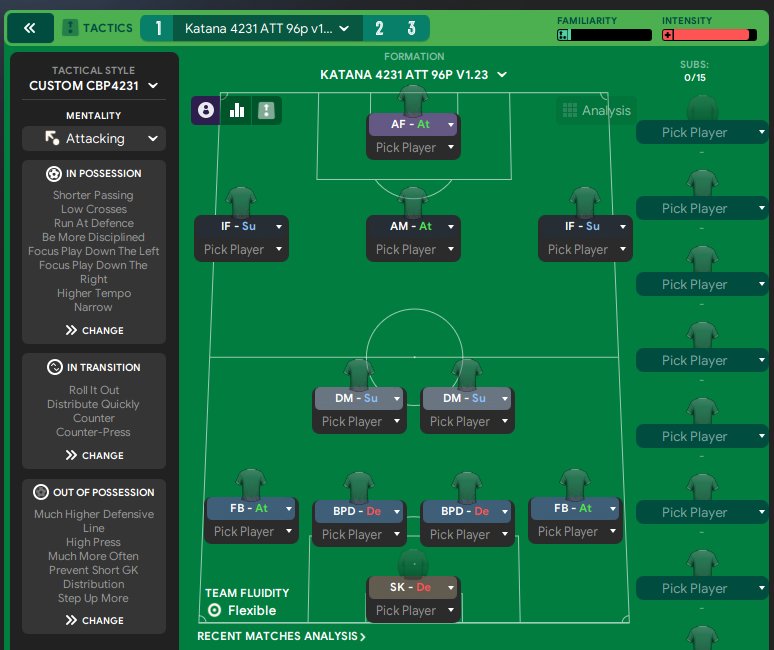 following recent trend trying Katana with regista and PI changes to the right side of the pitch