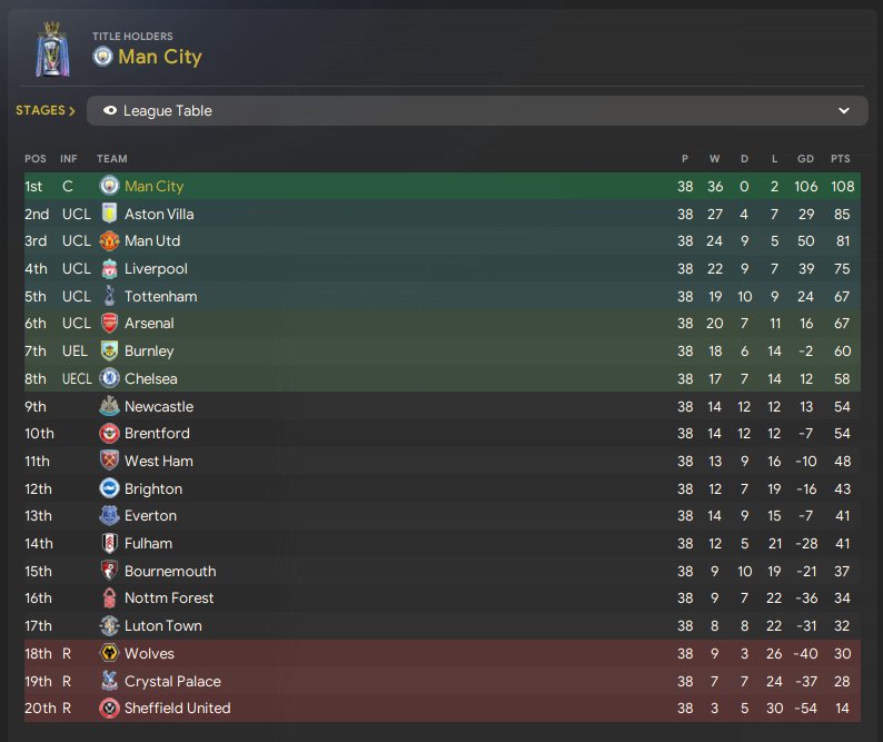 I don't know whether i'll be able to keep him or not next season but he was happy abut staying at the end of it all. Anyway here are the fantastic results. I tended to be more cautious or balanced away from home and see how the game unfolded but at home i mainly stuck to positive throughout. This led to some absolute thrashings and i was very pleased. The home results were pivotal in the promotion push. Expand