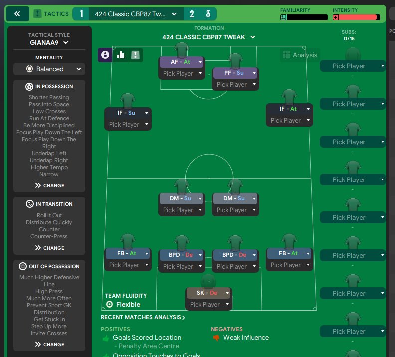Changes- Be more disciplined Added more direct passes to FB Removed cross from byline from FB Added roam from position to IF and AM Added hold up ball to AM