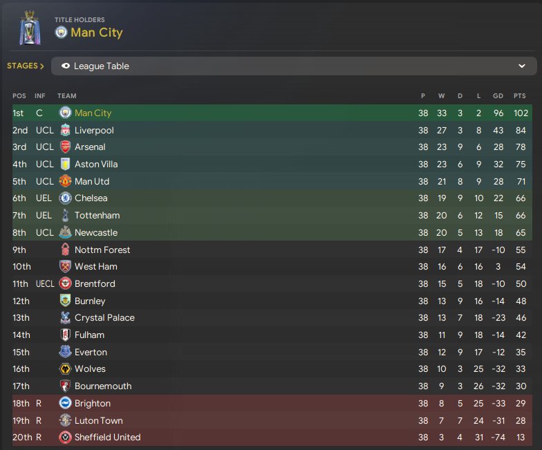 Media prediction was for the team to get relegated as always. My wage budget was as expected lowest in the league by a good margin. I had no worries about staying up and thought that i would get promoted using the tactic but it may take a few seasons. I was very wrong.