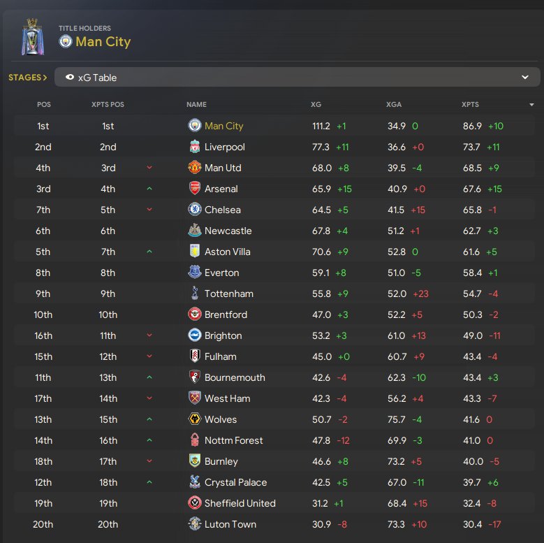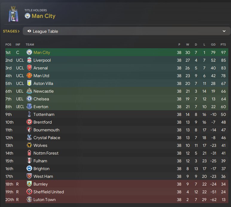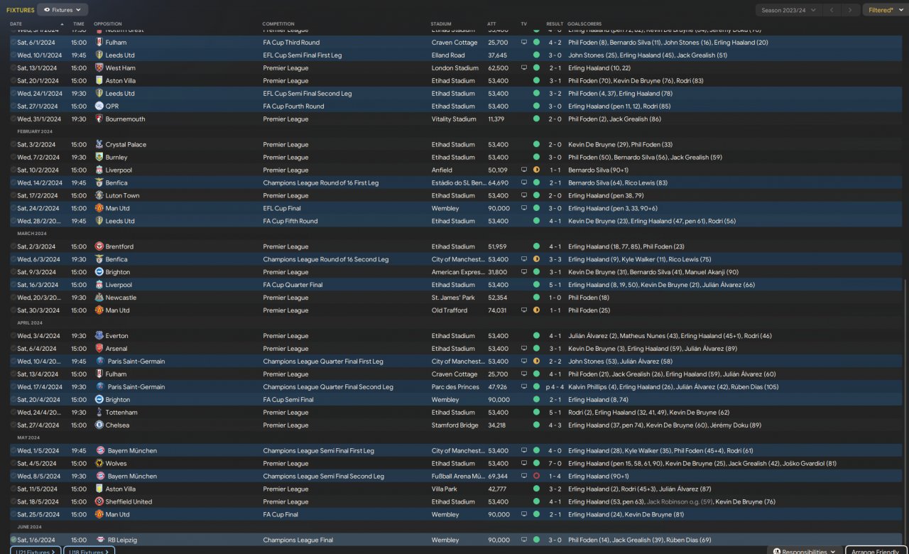 Pretty happy with the results, all but the carabao cup won. Really intriguing that it only conceded 24 goals in the league. Only 3 defeats in all comps.