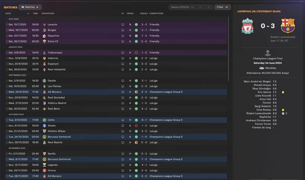 Yes, It was strange, I've tried with a wider system and WCBs but got worse results, Idk why tho haha, In my main tactics I've always seen that prioritazing the flanks is a must, tbh I think this formation has a limited ceiling, maybe I can figure out small changes or tweaks as I did with the previous one but the tendencies act strange and I don't think it will improve much better, but I've enjoyed trying to work out one of my favourite irl systems with knowledge I've got from making more competitive tactics in fm until fm25 arrives haha