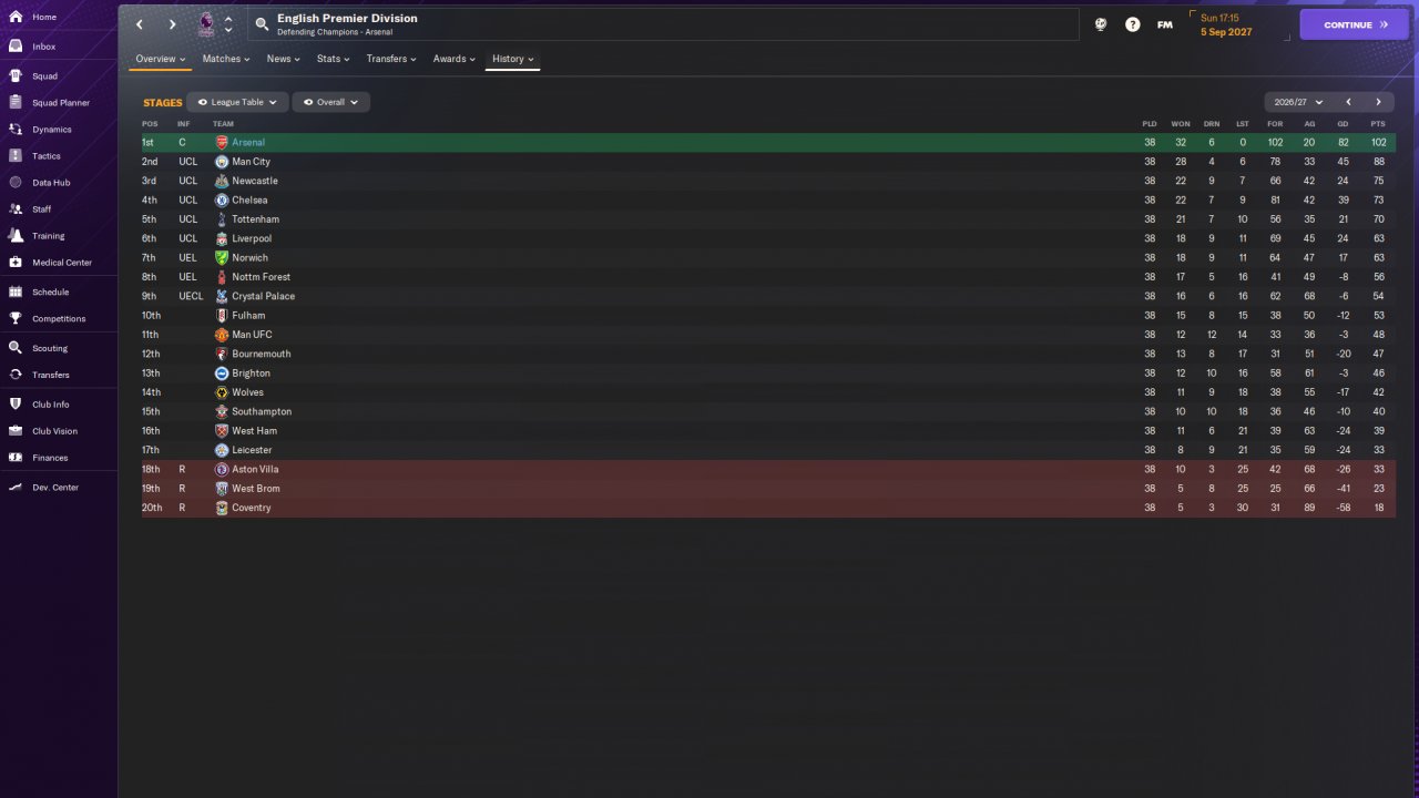5-1-2-2 Invincibles 102 Pts 82 GD