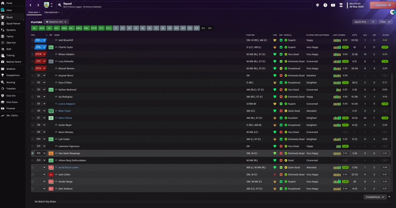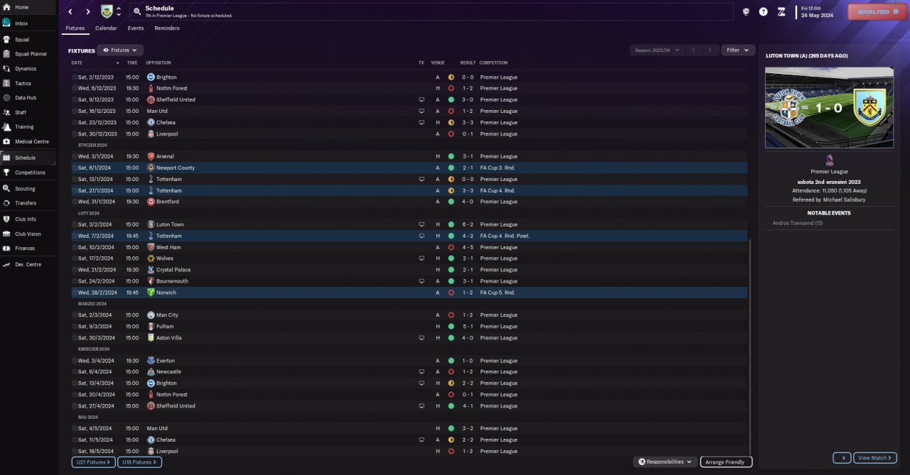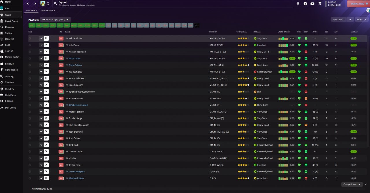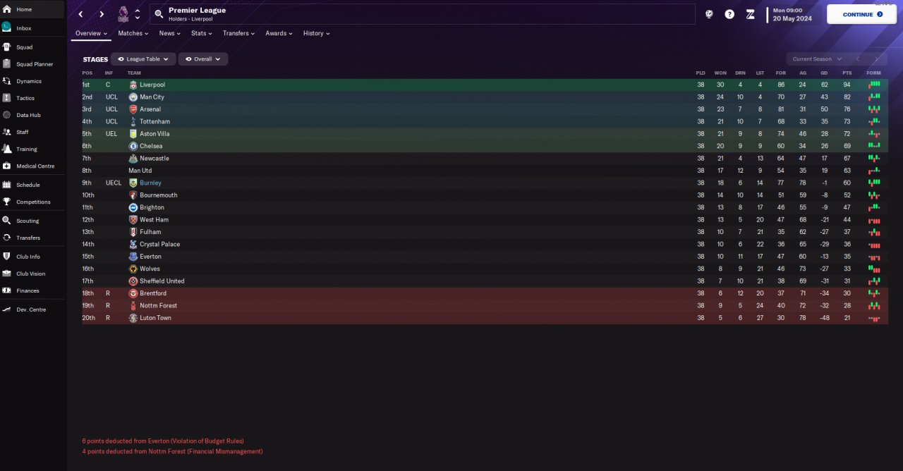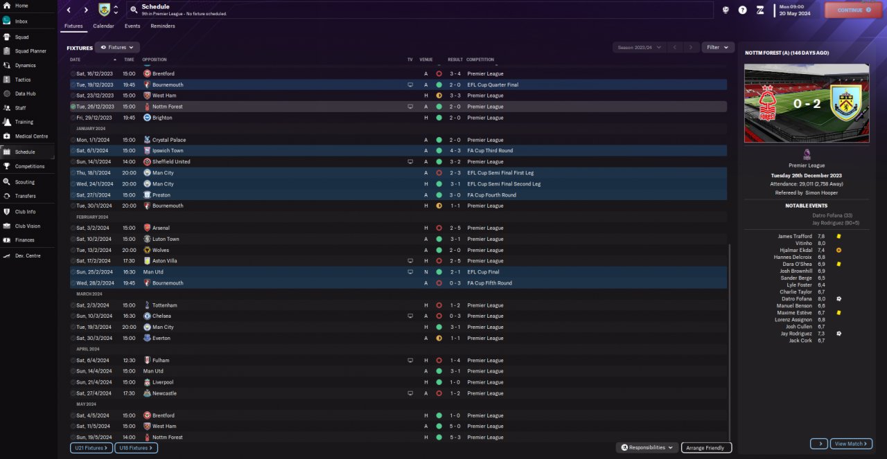 I've been hopelessly looking for a 4-2-4 counter, this was doing the best in my very limited draft tests. This season was simulated - force tactic on, force current team selection off.