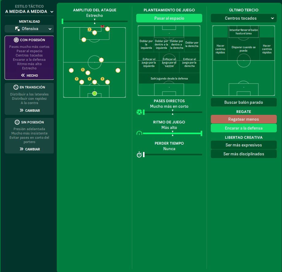 Hello everyone, I bring you a tikitaka style and asymmetric tactic. It has given me good results with Real Madrid and Racing de Ferrol. I leave you the video explaining the tactic with English subtitles.