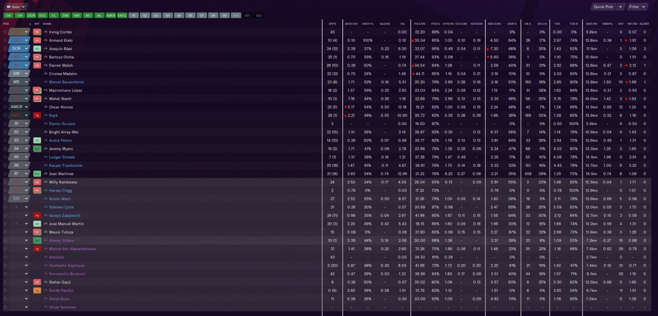 As far as I understand, this is what we know so far: There are a few attributes (primarily speed) that are critical (1). Other attributes also have some influence (2), but it’s too minor to quantify with the current test setup. Additionally, it’s disappointing that the attributes recommended by SI for each role don’t align with reality (3). In other words, the key question at this point is: which of the less significant attributes are important for specific roles? This question is particularly intriguing because, as outlined here (1), differentiation through speed becomes increasingly difficult in top-tier football.