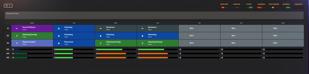 2 team: only 2.1 tactics (it differs from 2 only by the load in the training week, so that the speed training is spread over the whole week and not on 1 day).