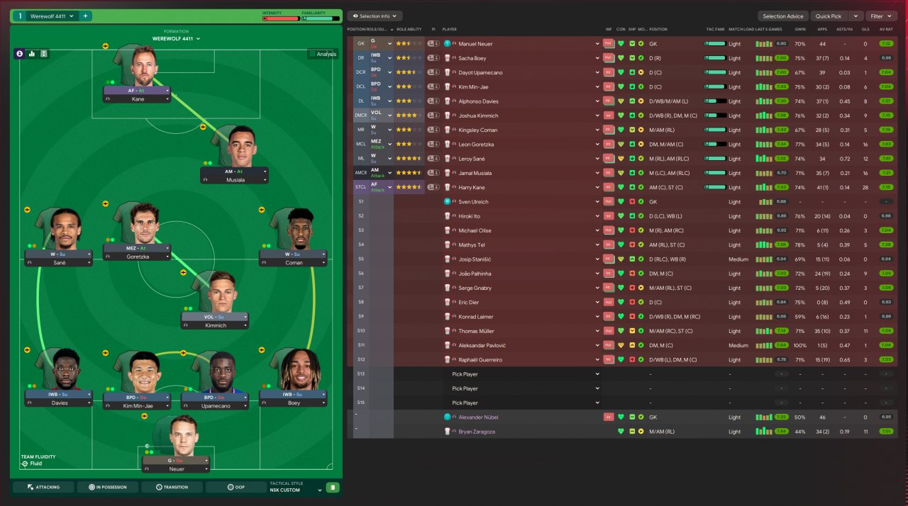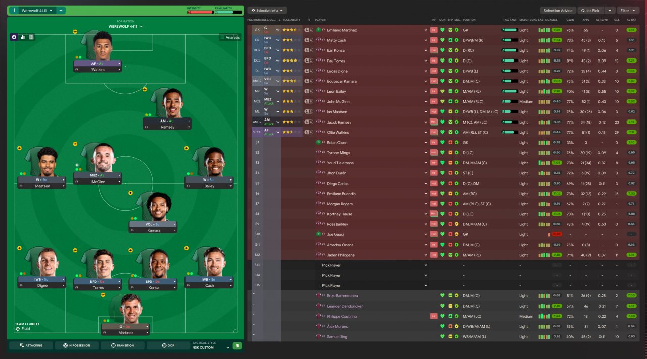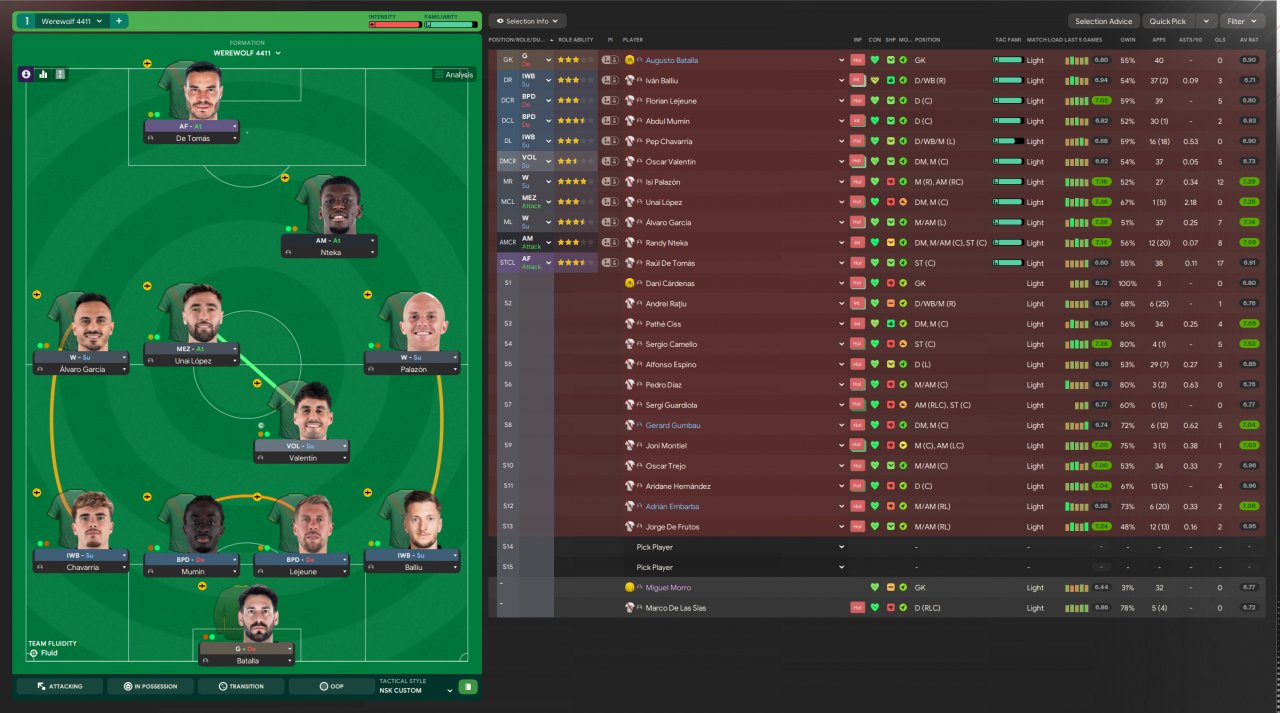 The compact 4-4-1-1 shape ensures defensive solidity while allowing deadly transitions and calculated attacks. Like a werewolf stalking its prey, the team patiently waits for the perfect moment to strike, combining disciplined positioning with sudden bursts of pace and precision.