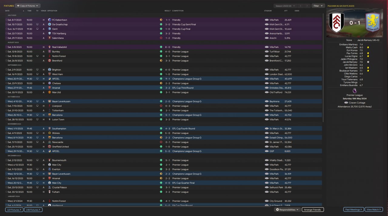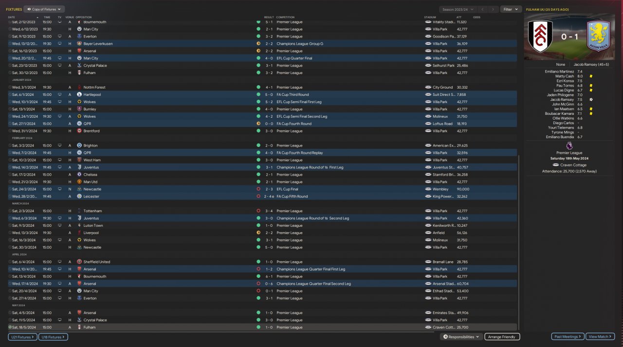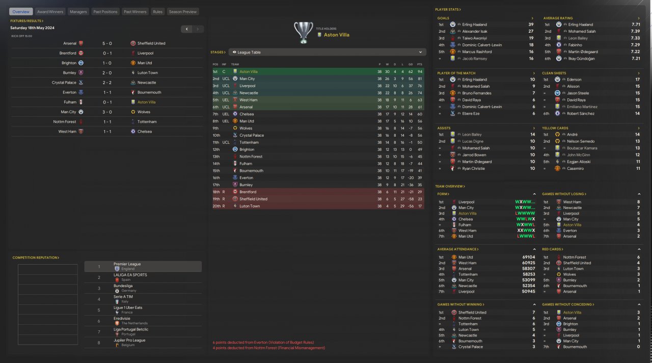 Holiday-tested, best XI chosen, AM overseeing training, and SPC responsible for set-piece strategies. No Transfers Tactic tested with Man City and Luton, Luton was able to get to the 9th place!