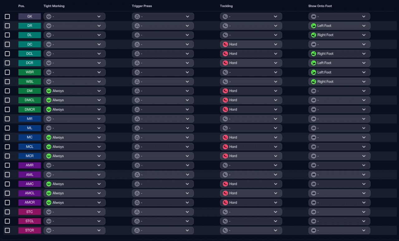 Combining this with some man marking assignments it's impressive how much you can stifle the opponents build up.