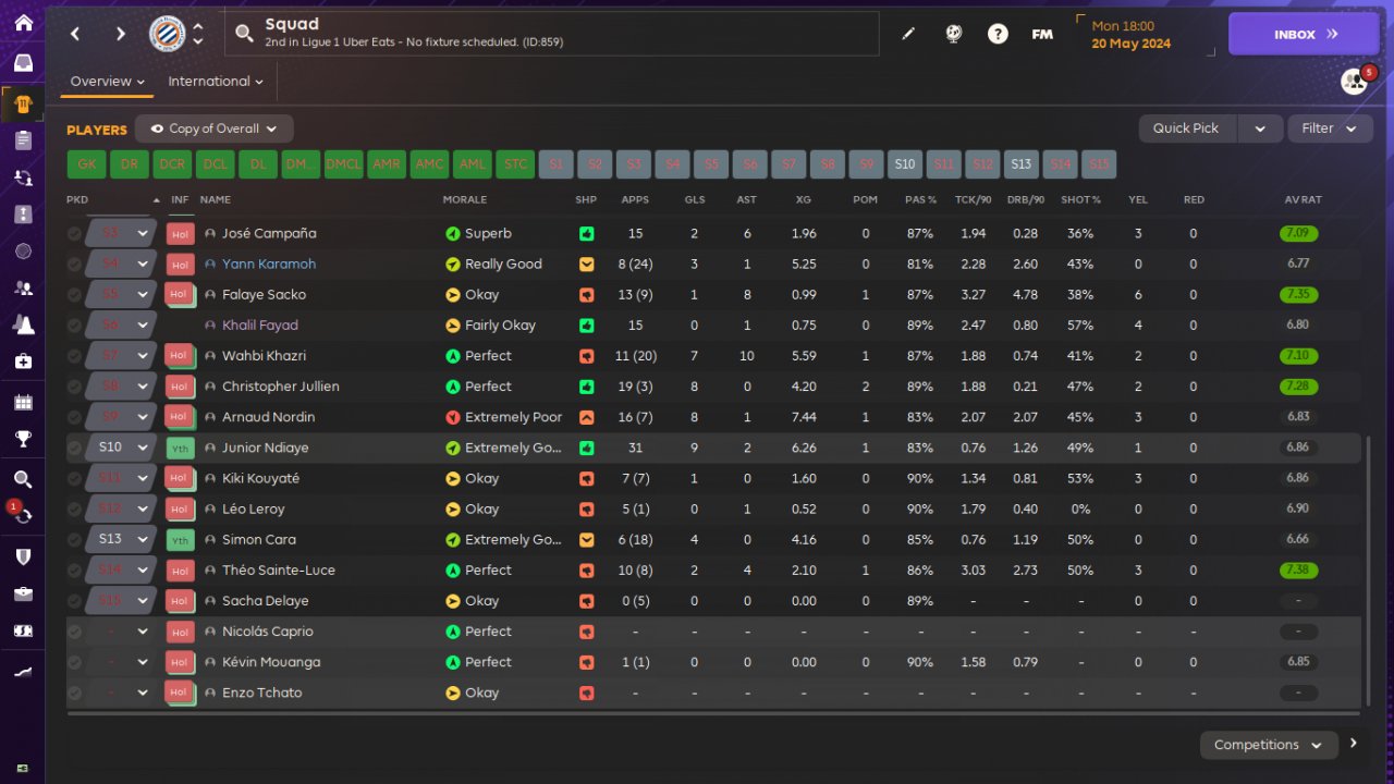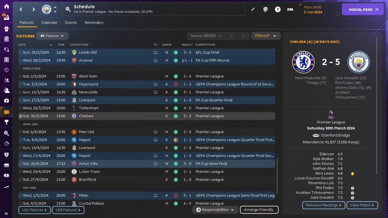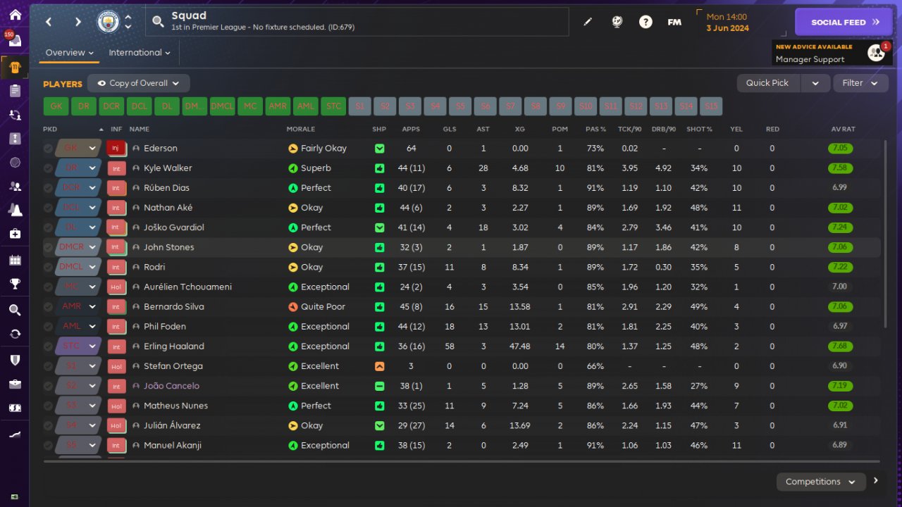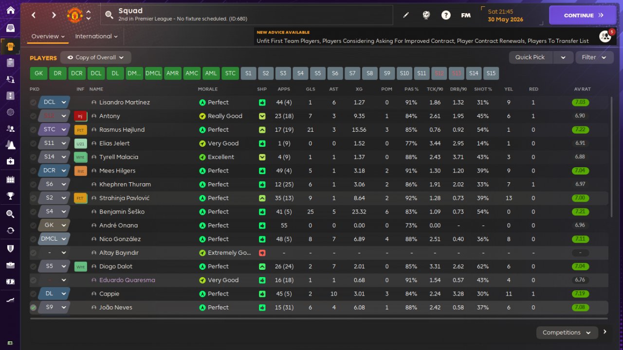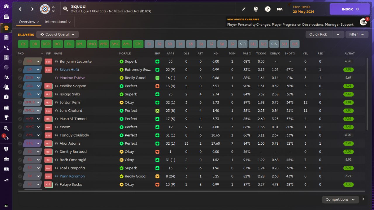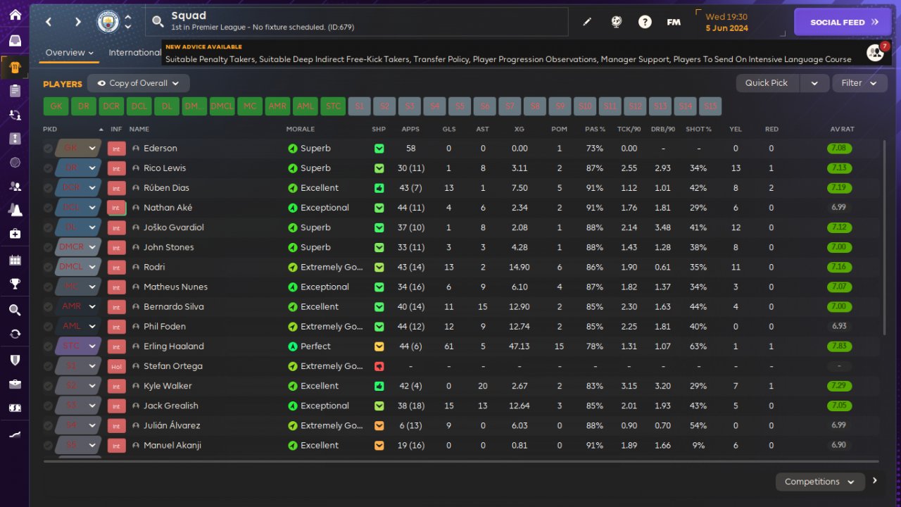 Delegated nearly every tasks, except set pieces and opposition instructions (I used https://www.fmscout.com/c-fm24-tactics.html?id=12102 for attacking corners, for others, I just followed staff recommendations).