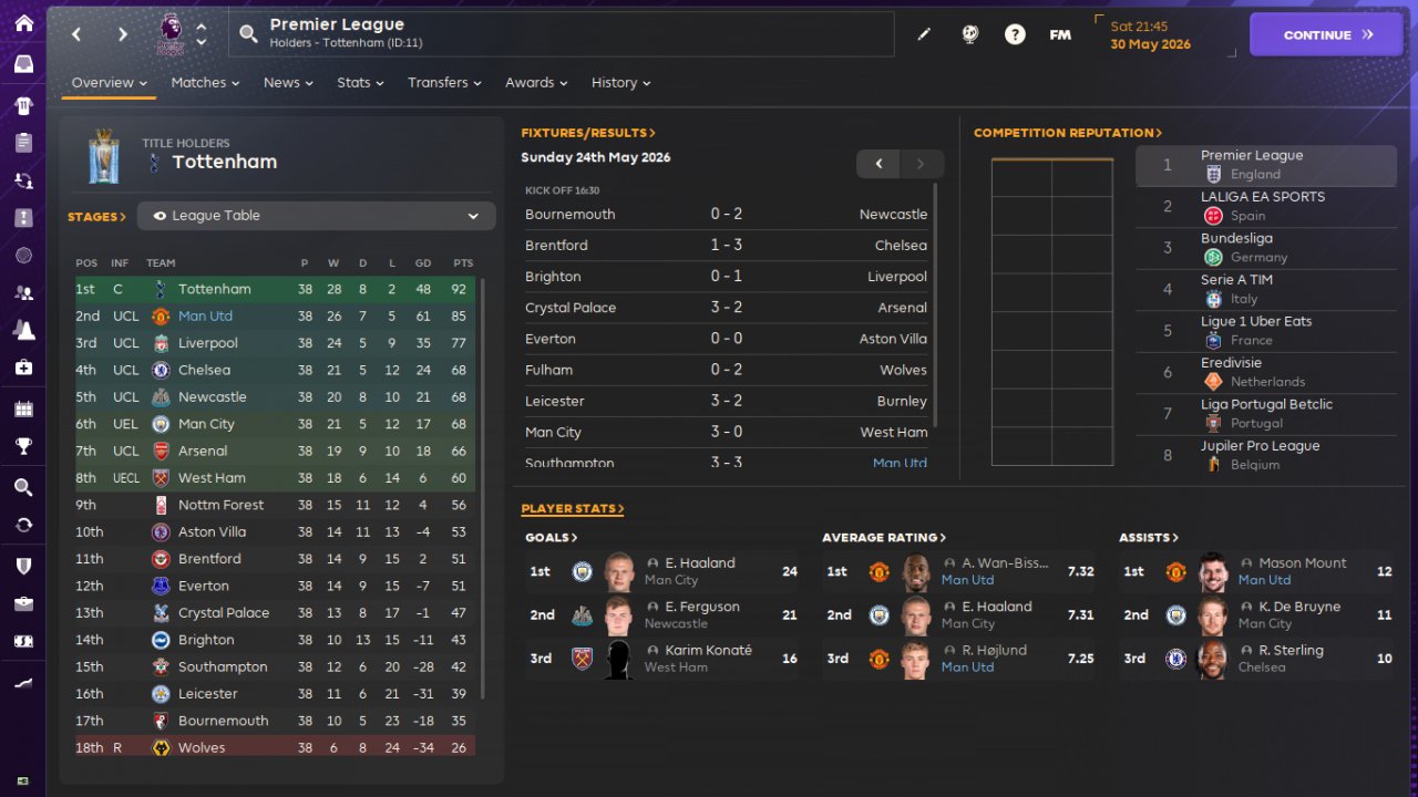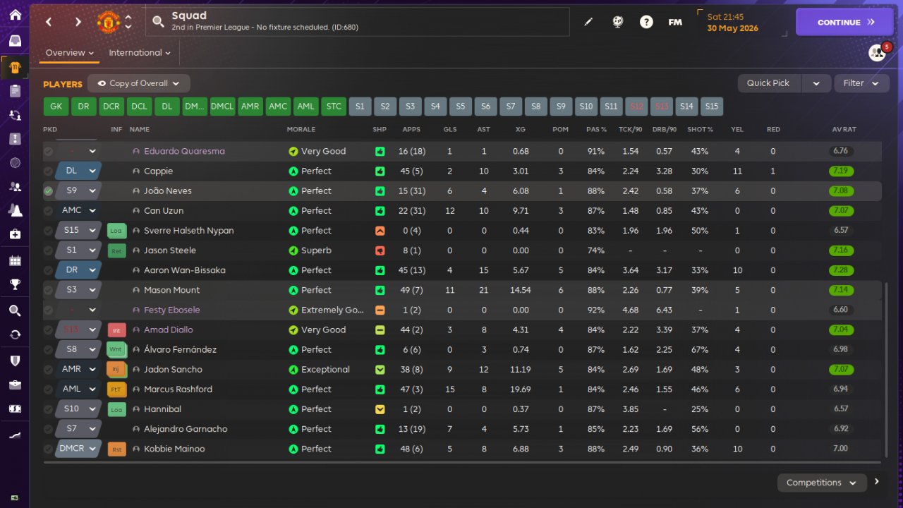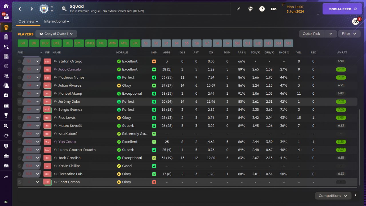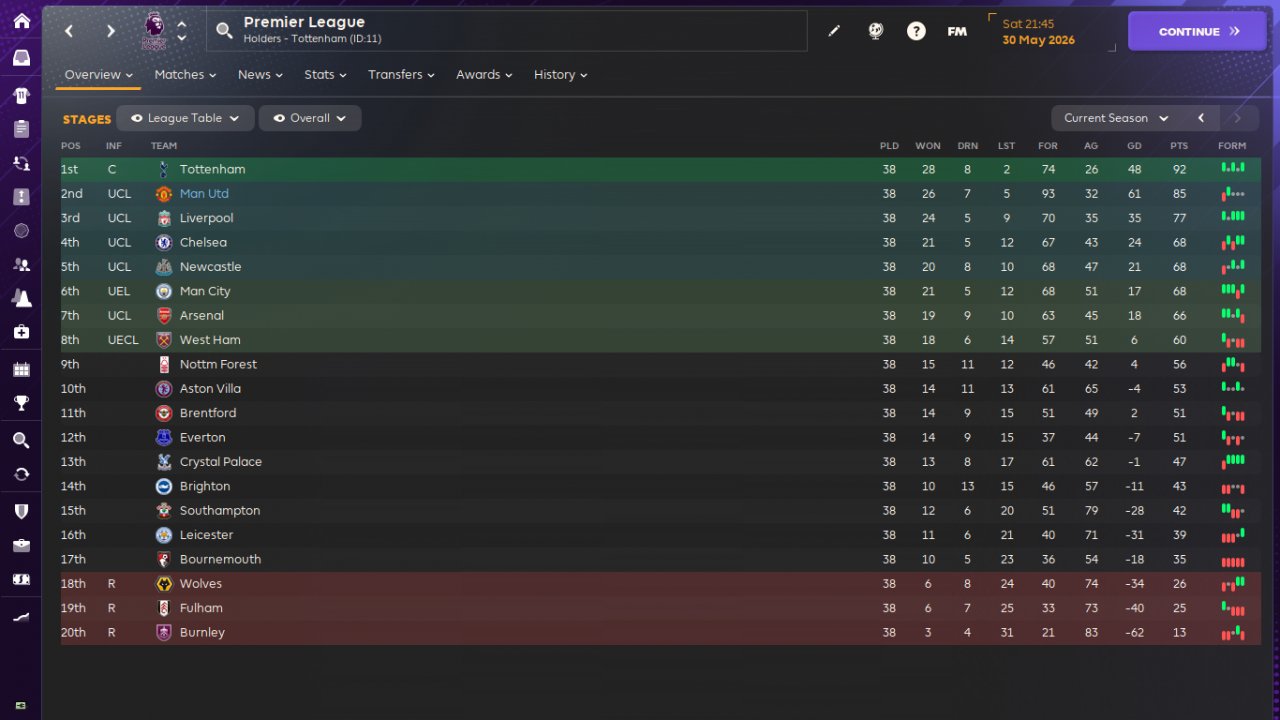 Delegated nearly every tasks, except set pieces and opposition instructions (I used https://www.fmscout.com/c-fm24-tactics.html?id=12102 for attacking corners, others just followed staff recommendations).