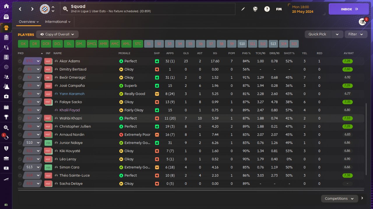 Montpellier save, attacking corners using https://www.fmscout.com/c-fm24-tactics.html?id=12102.