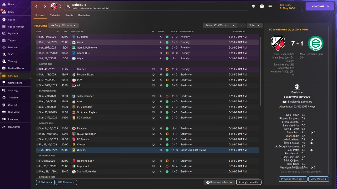 Switched From my 5212, to a more traditional 433, more players getting ahead. Playing much more aggresively and scoring almost for fun. 35 goals on my main striker, and my wingers all have over 10 G/A, the CM-A also gets heavily involved.
