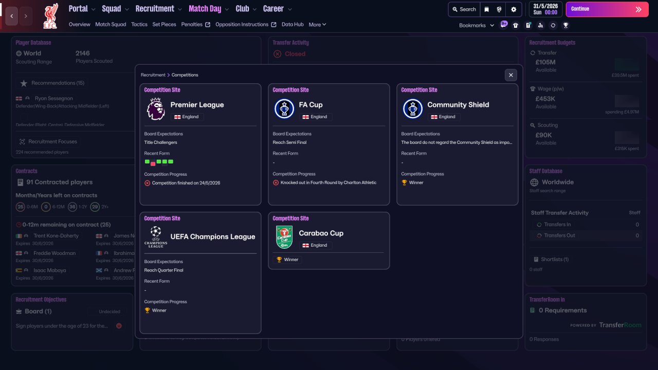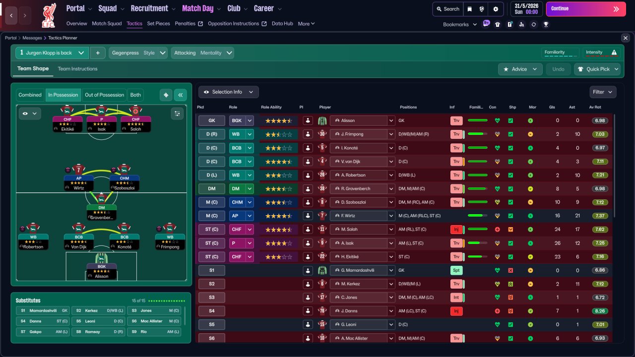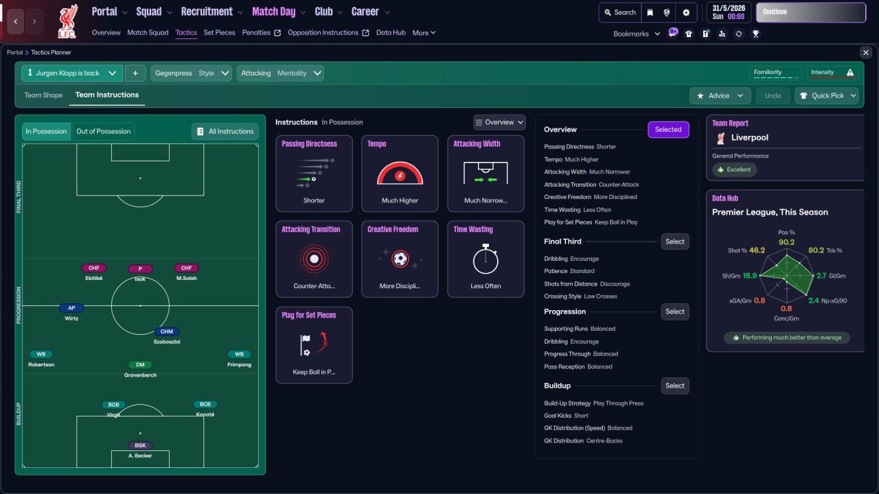 I've been playing around with tactics and i know there's improvement needed but this tactic is absolute carnage scores loads of goals just like liverpools jurgen klopps side i think we were extremely unfortunate not to win the league but yet again i holiday all of the season so im very sure i could of change the outcome champions league winners league cup winners ive also tested with Portsmouth in championship where we finished 3rd and won in the play offs we no transfers if theres any suggestions to make this better I'm open to it