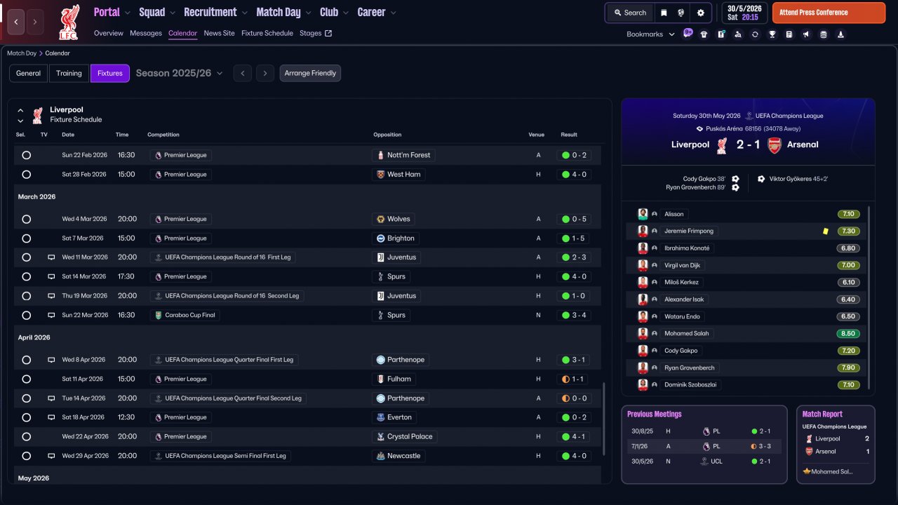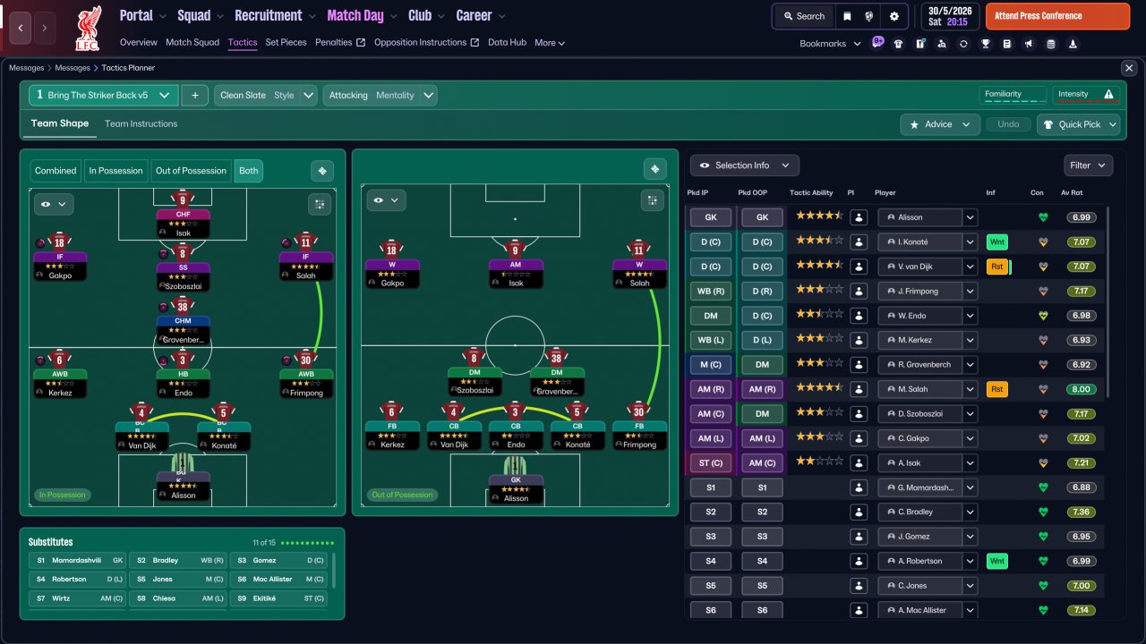 Very impressive results using the 1 striker - Invincible season with Liverpool + Champs League win