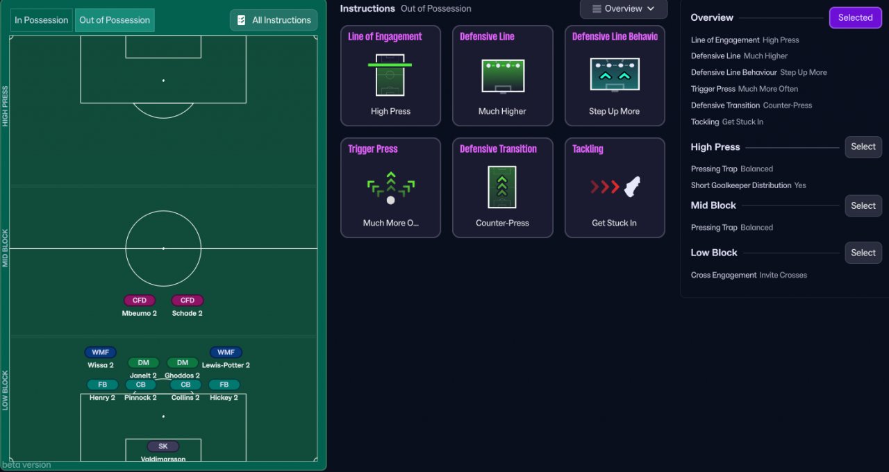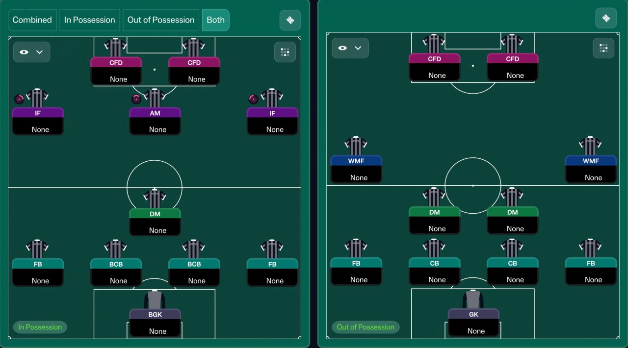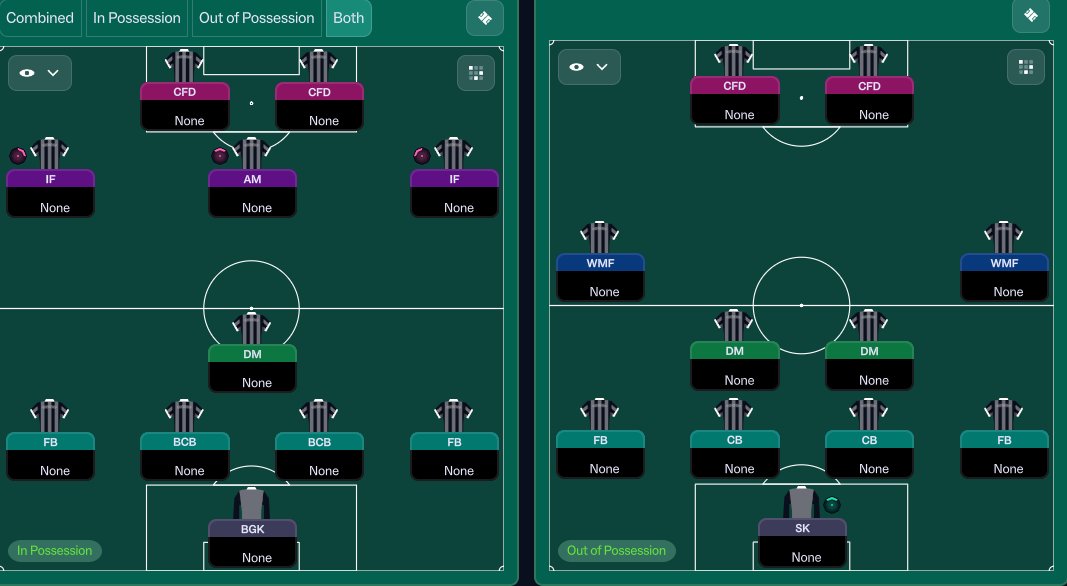The new FM gives you the ability to customize IP and OOP tactic, so why not try using an attacking formation with the ball that switches to a defensive shape OOP?