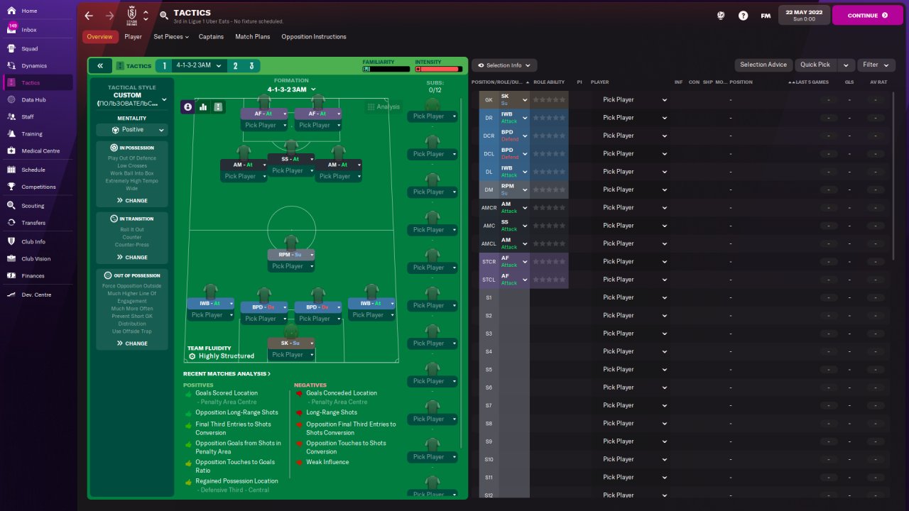 As we all know, the most popular tactic in fm was high pressure. But it seems to me that it is too risky. Therefore, I tried to make an attacking, but at the same time, a coherently defensive team in the middle pressure.