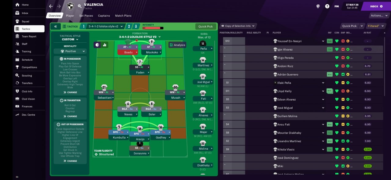 Hello everybody! At the end of FM21, I created 2 well-working tactics and wanted to share them. With my Valencia, I conceded only 29 goals (the best result in my entire career) and scored 147 goals (the best result of my career) with V2 tactics. I would like to hear your opinion about their work in FM22