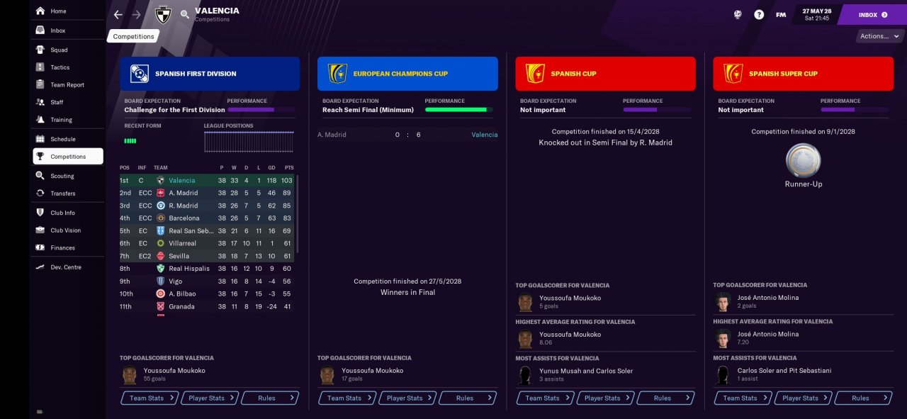 With my Valencia, I conceded only 29 goals (the best result in my entire career) and scored 147 goals (the best result of my career) with V2 tactics.
