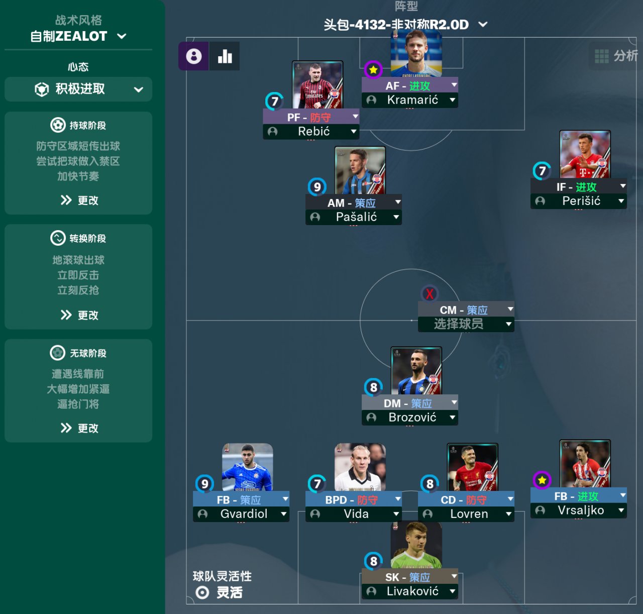 If your right back is too weak, you can reduce the flank attack ability to obtain the defense ability, and appropriately increase the middle attack to make up for it. Here you can replace Vols with FBS.This is the origin of the second version.