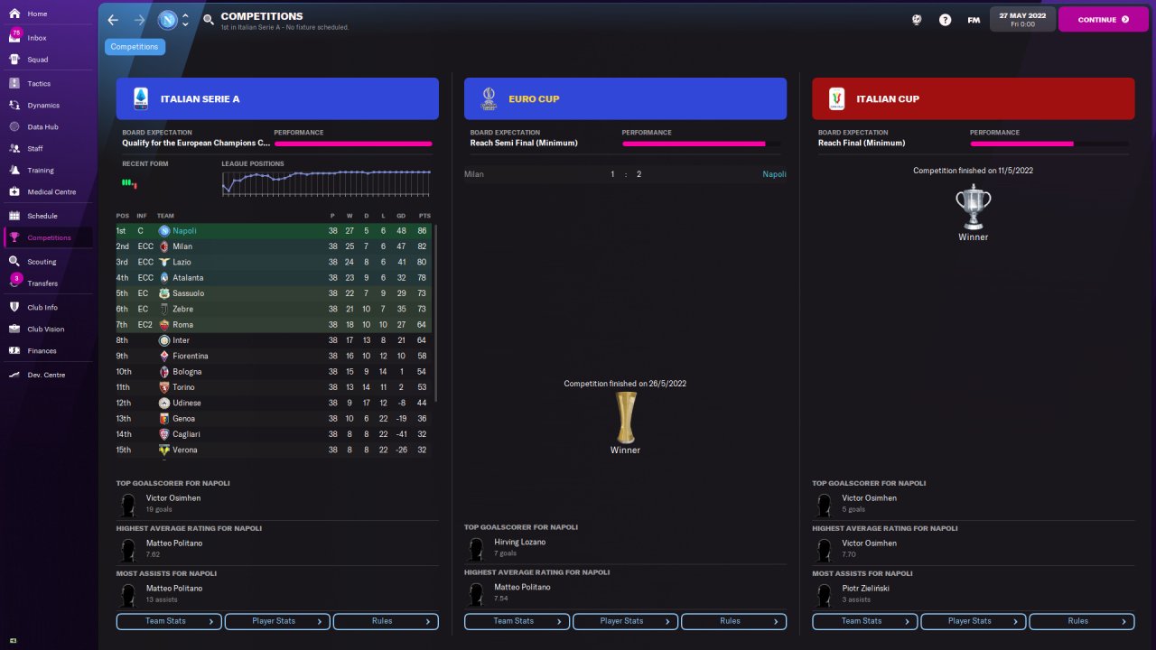 Man United - 104 point quadruple Newcastle - 6th in Prem with no signings Bristol City - 100 point promotion Sheff Wed - League & Cup double Roma - League title Lyon - Won the league beating PSG