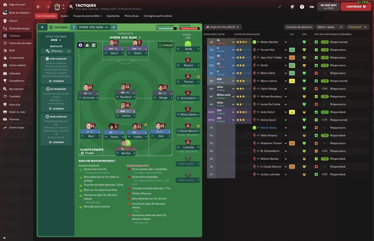 With the ball, the team is aggressive looking for quick counters and high tempo interchanges to unsettle the opposition.
