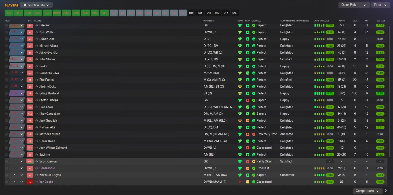 Google Doc is sortable. Haaland is offside more than most