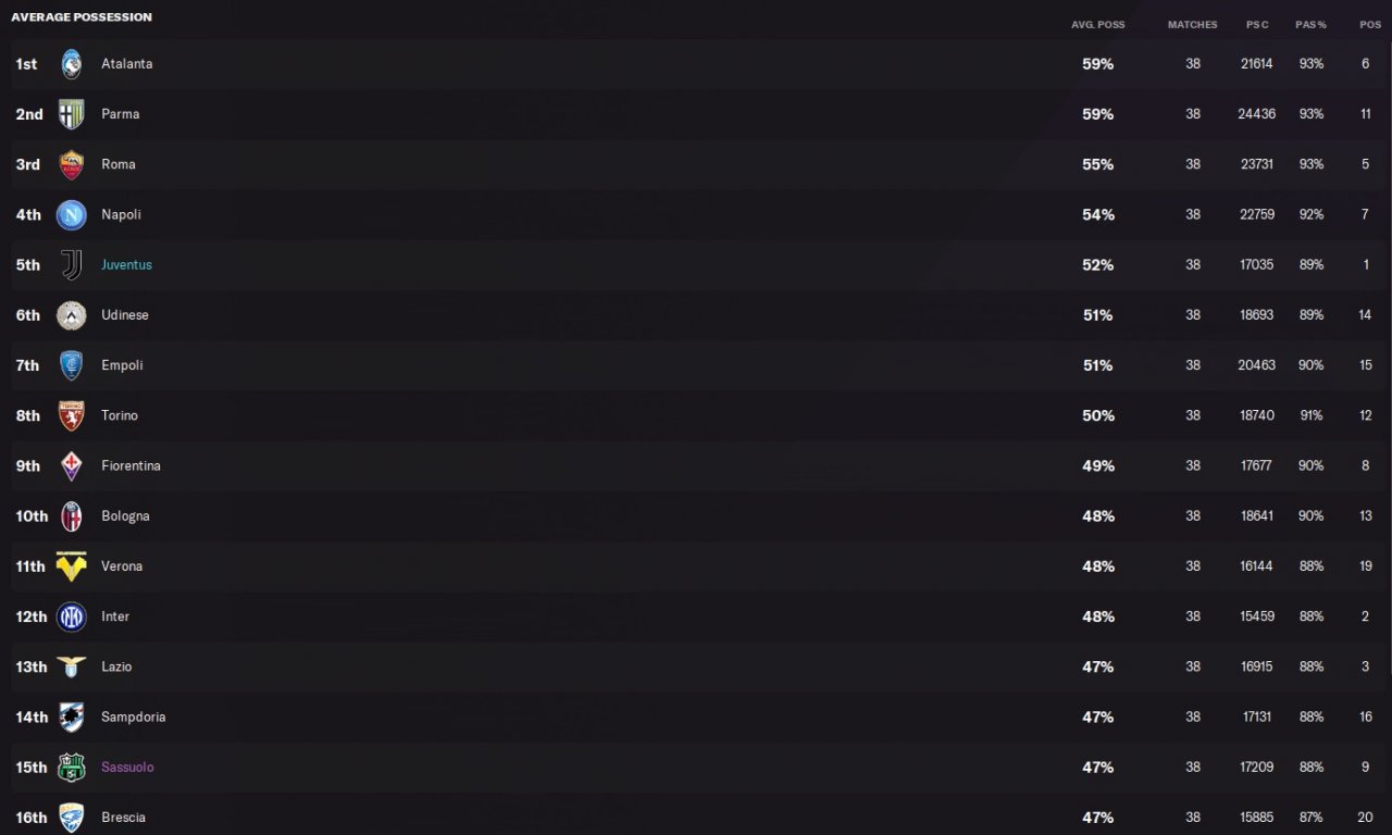 3rd on Serie A, same point with 2nd, and less 2 point from 1st