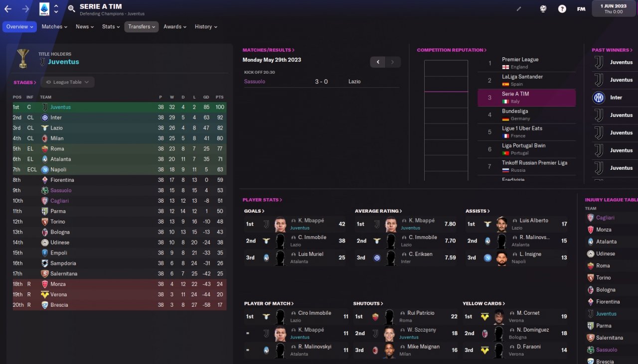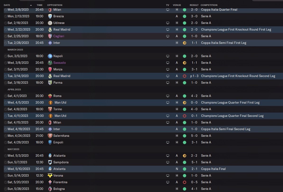 Very Attacking mentality Win Serie A only Lose Coppa Italia & Uefa Conference League on semi