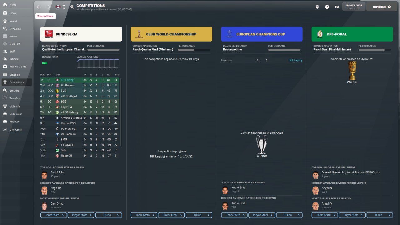 Tactical emulation of the Atalanta manager, we literally dominated the bundesliga, winning practically everything there was to win. We were undefeated for the entire season, winning a magnificent treble.