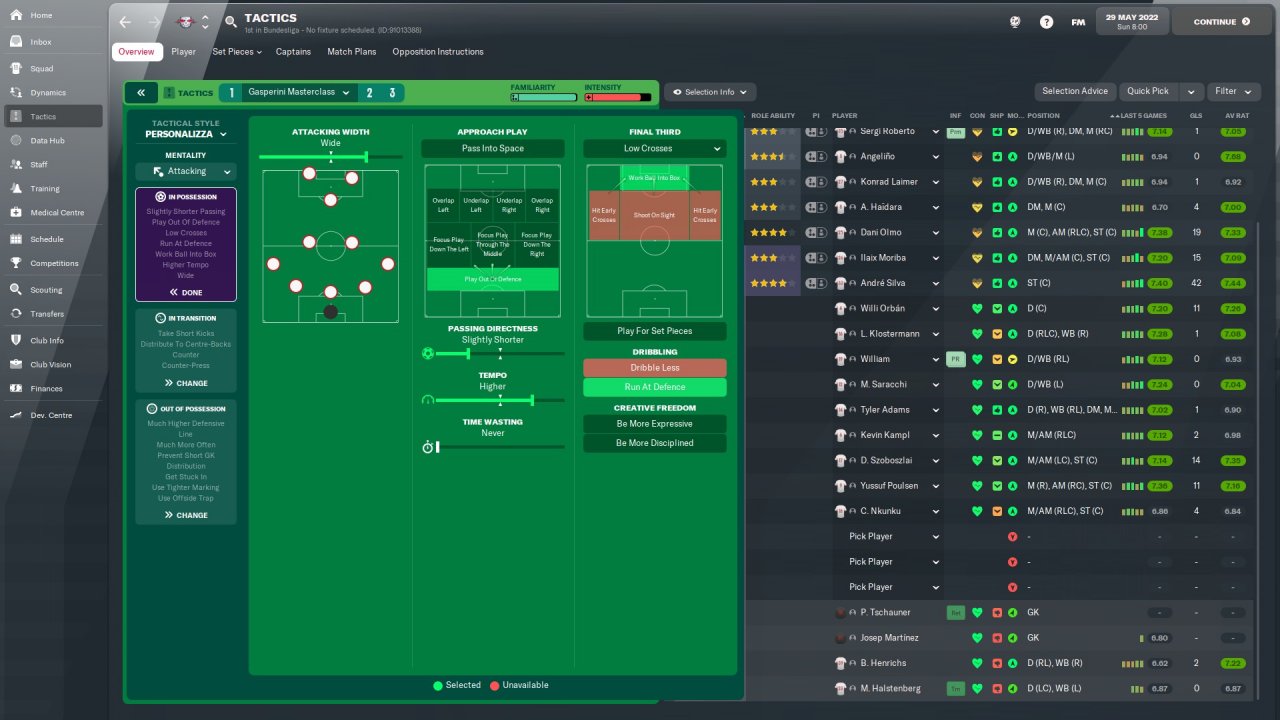 We tried to recreate Marco Rose's tactic, more specifically his 4-2-3-1 used many times especially with Borussia M'gladbach. We achieved excellent results, with Haaland the real protagonist of the season.