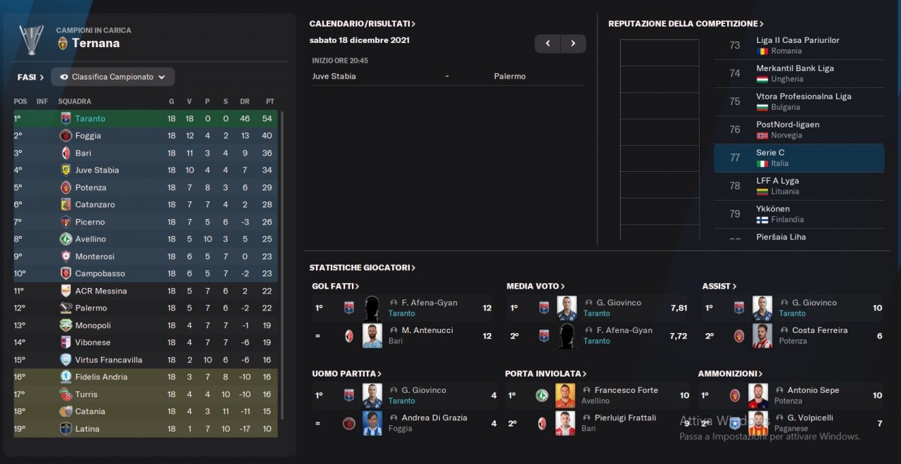 Awesome Tactic, i started a career with Taranto in italy serie C, half season without any loss,predicted 18 i've buyed only 2 free agents and ask for 1 loan. From the original tactic i change one role in the midfield and the attacking corners