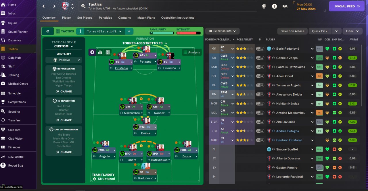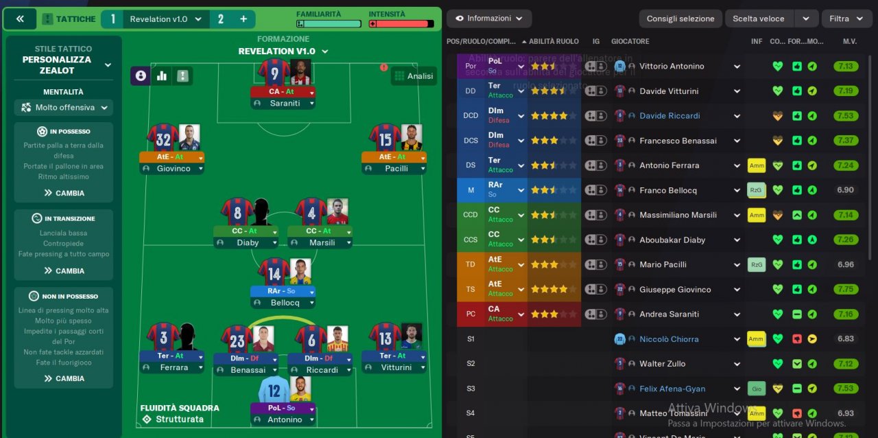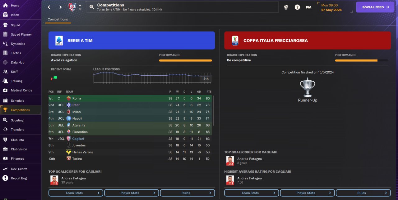 Hello, i've revisited a 22'fm tactic, it seems very good with low budget or lower league team's, used it with my current career with torres in the serie B on second year and promoted (19th predicted) so tested holiday mode with cagliari serie A (18th predicted) runner up in Coppa italia, 7th place in Serie A (concerence league) with a very low morale and team cohesion, managing it you earn 10/20 points more for sure, Petagna 30 gol top scorer in serie A, for sure not high end striker.