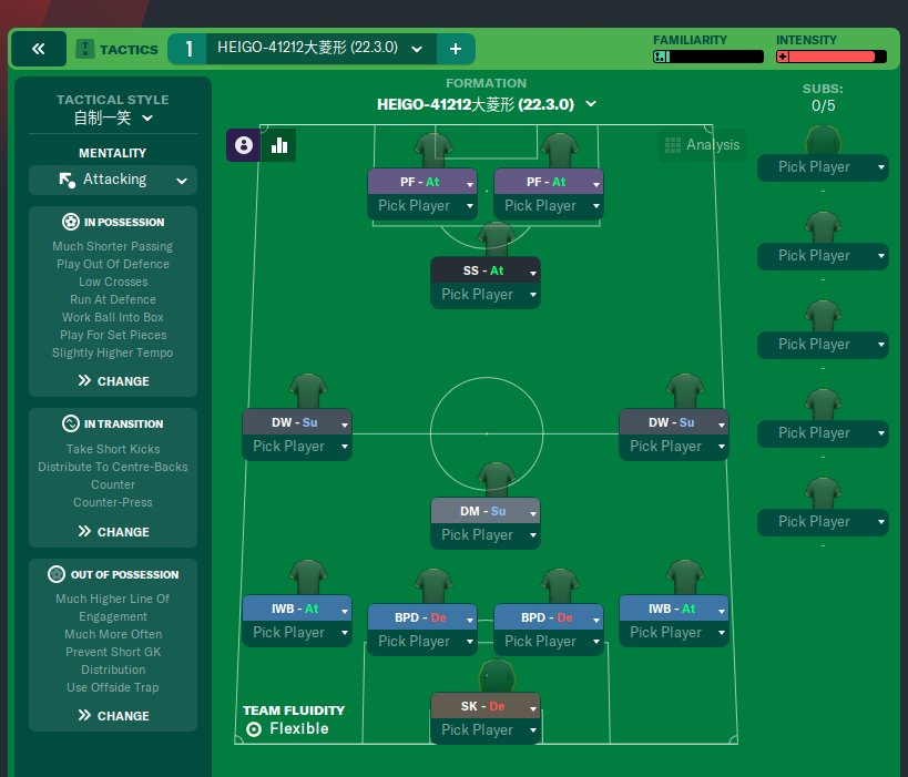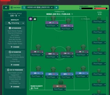 Thank you for enjoying it.I just want the midfield to focus more on control and leave the attack to the forwards and full-backs. Actually, it's not reasonable, just for the game itself.